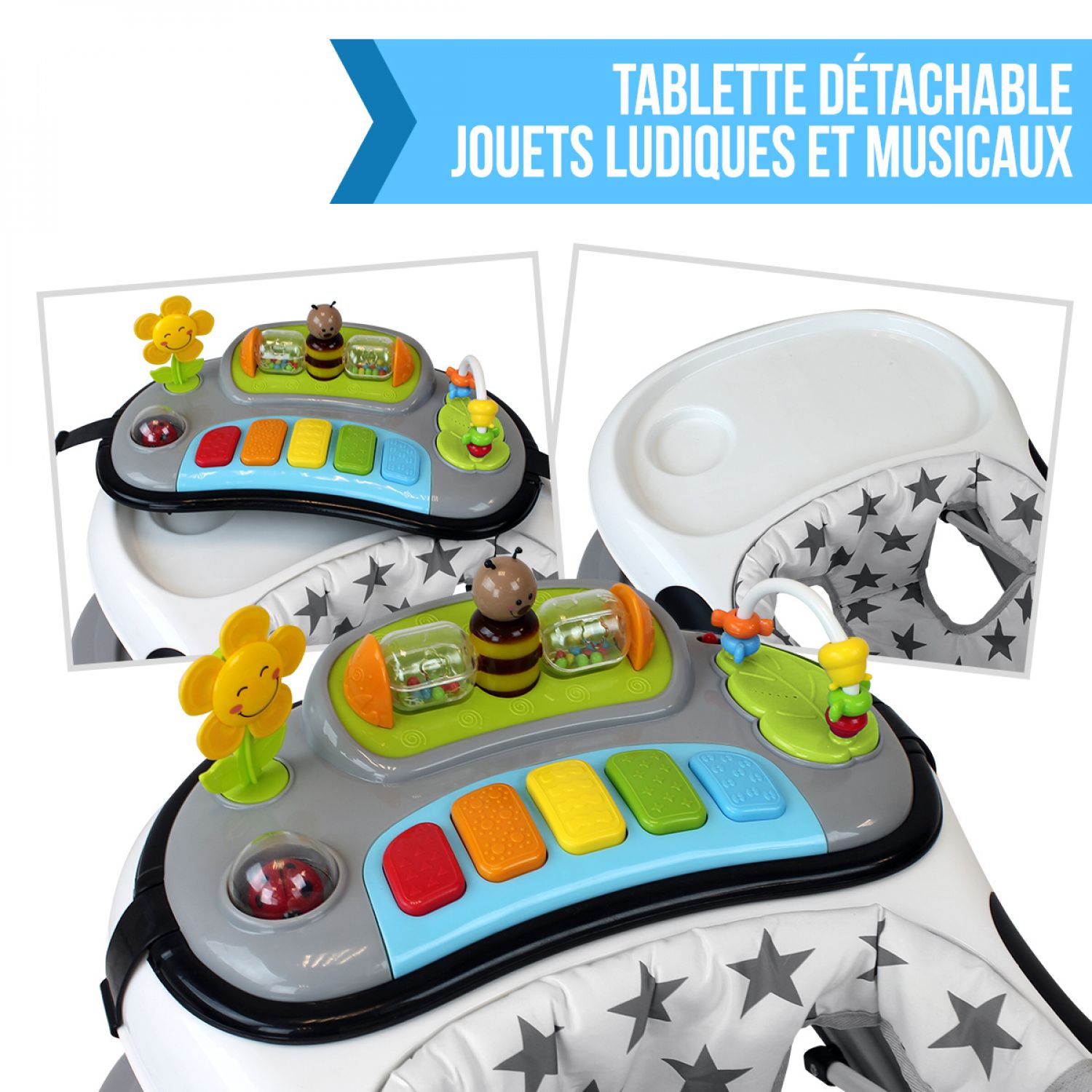 Monsieur Bébé - Trotteur bébé musical évolutif pliable réglable en hauteur - Noir