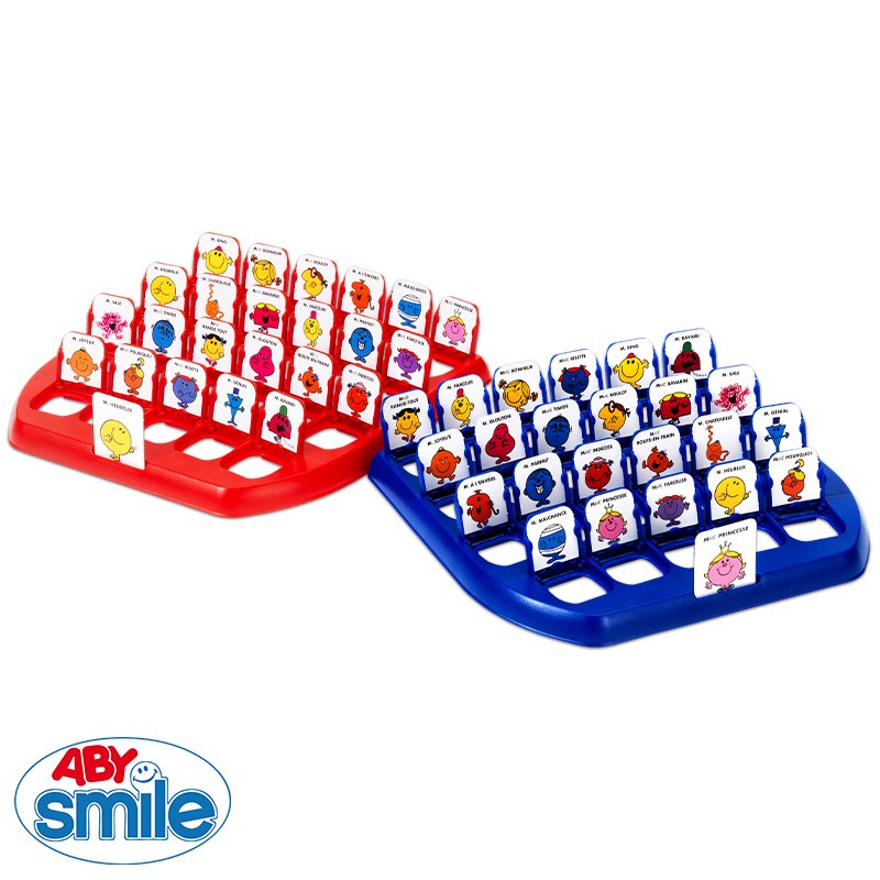 Parviendras-tu à trouver le premier le Monsieur ou Madame sélectionné par le joueur adverse ? Pose des questions à ton adversaire et devine quel personnage il a tiré (<< Ton personnage est-il un Monsieur? >>, << Ton personnage porte-il un chapeau? >>) Un concept de jeu adapté à un cible plus jeune vs la concurrence (4 ans et plus) Un jeu également éducatif grâce aux formes / couleurs / accessoires à mémoriser A partir de 5 ans 2 joueurs