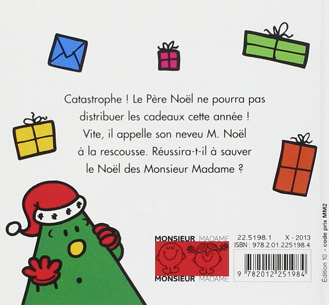 Catastrophe ! Le Père Noël ne pourra pas distribuer les cadeaux cette année ! Vite, il appelle son neveu M. Noël à la rescousse. Réussira-t-il à sauver le Noël des Monsieur Madame ?