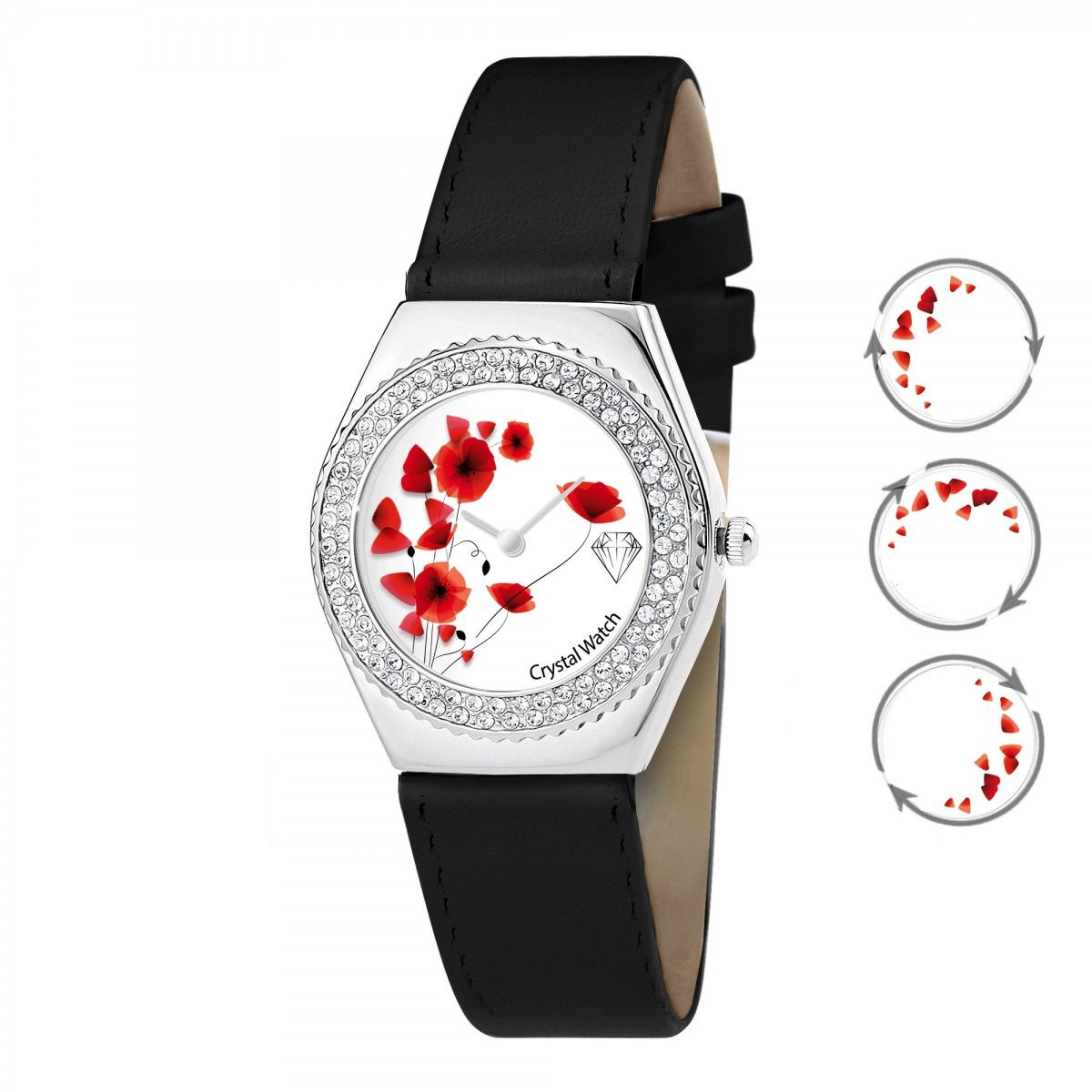 Libellé Montre Alysson Coquelicot à mouvement tournant SC Crystal ornée de Cristaux scintillants