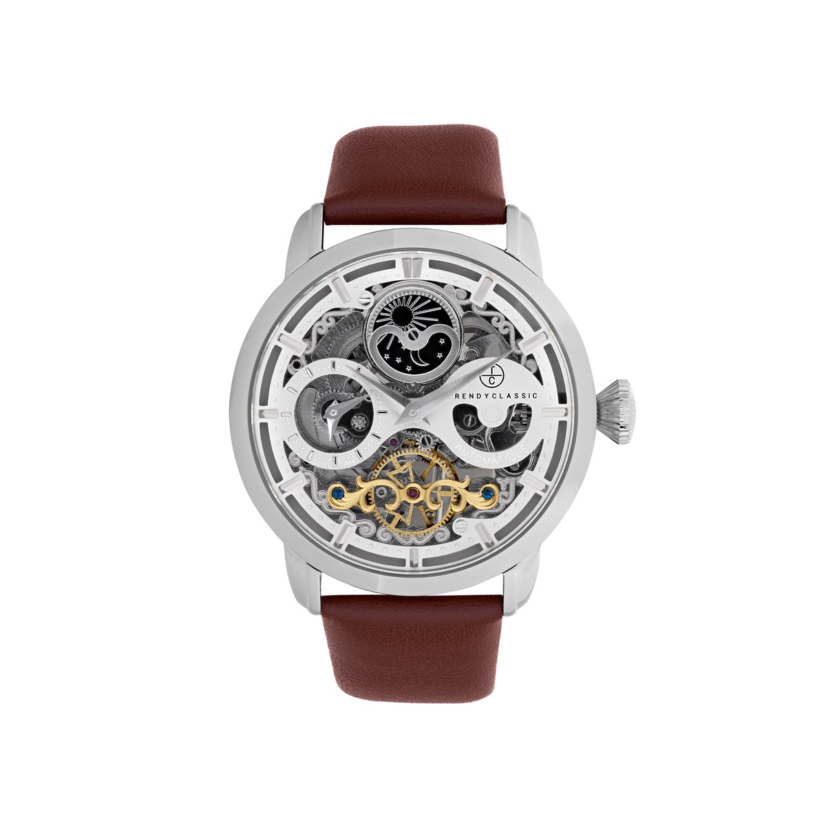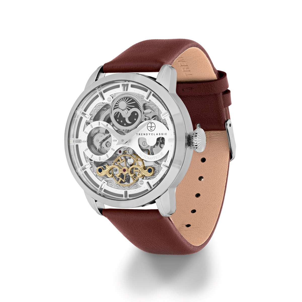 Le bracelet en cuir véritable, le boitier rond en acier inoxydable et le cadran squelette sont tout autant de détails qui mettent en valeur ce produit d'exception.