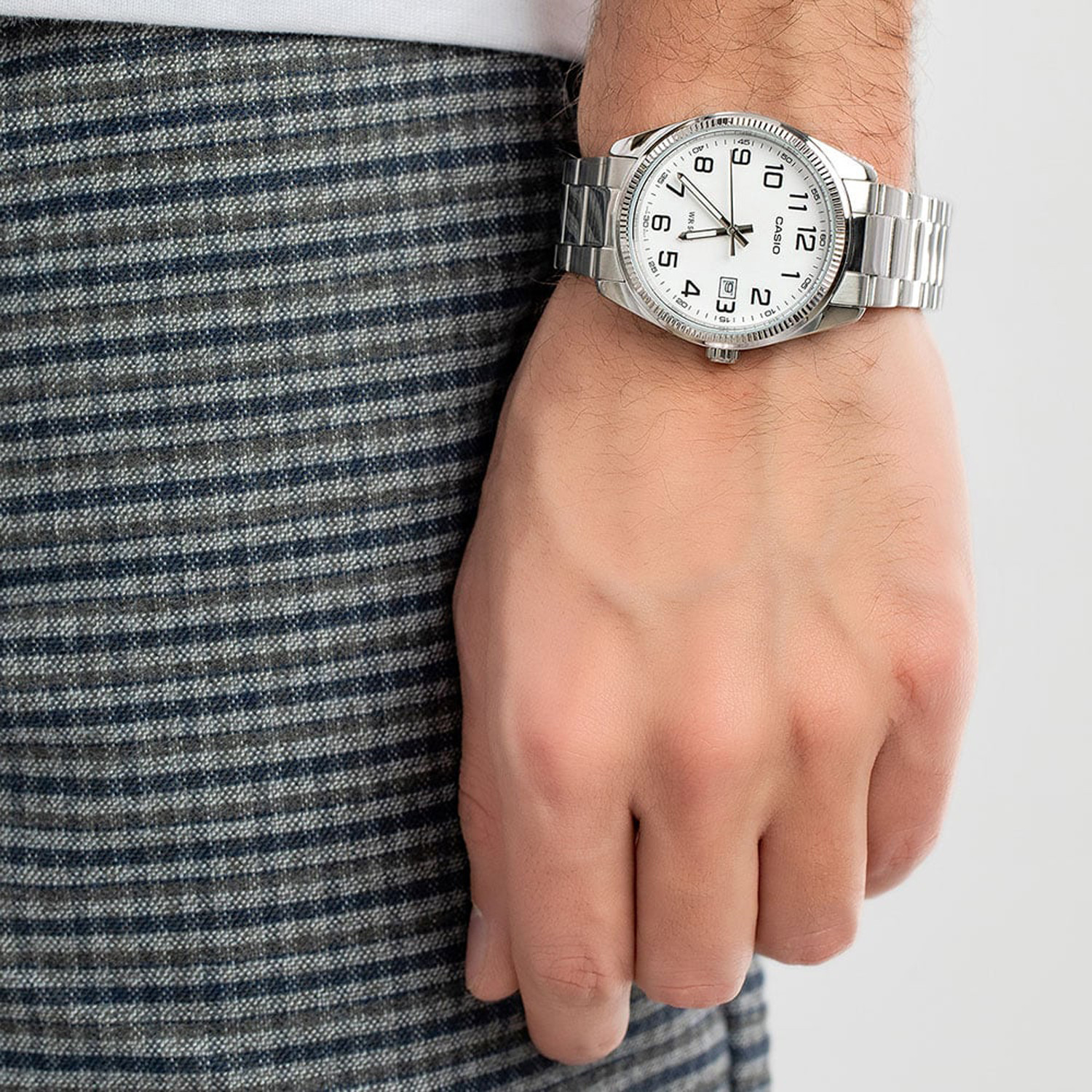 ?La Casio MTP-1302PD-7BV est une montre analogique élégante au design intemporel. Dotée d'un boîtier en acier inoxydable de 44,2 × 38,5 × 9,2 mm et d'un bracelet assorti, elle offre une allure raffinée pour toutes les occasions. Son cadran blanc épuré affiche trois aiguilles (heures, minutes, secondes) et un guichet de date à 3 heures. Protégée par un verre minéral résistant, elle est étanche jusqu'à 5 bars, convenant ainsi aux usages quotidiens. Son mouvement à quartz est garanti deux ans. Un choix fiable et sobre pour un style classique au quotidien.?