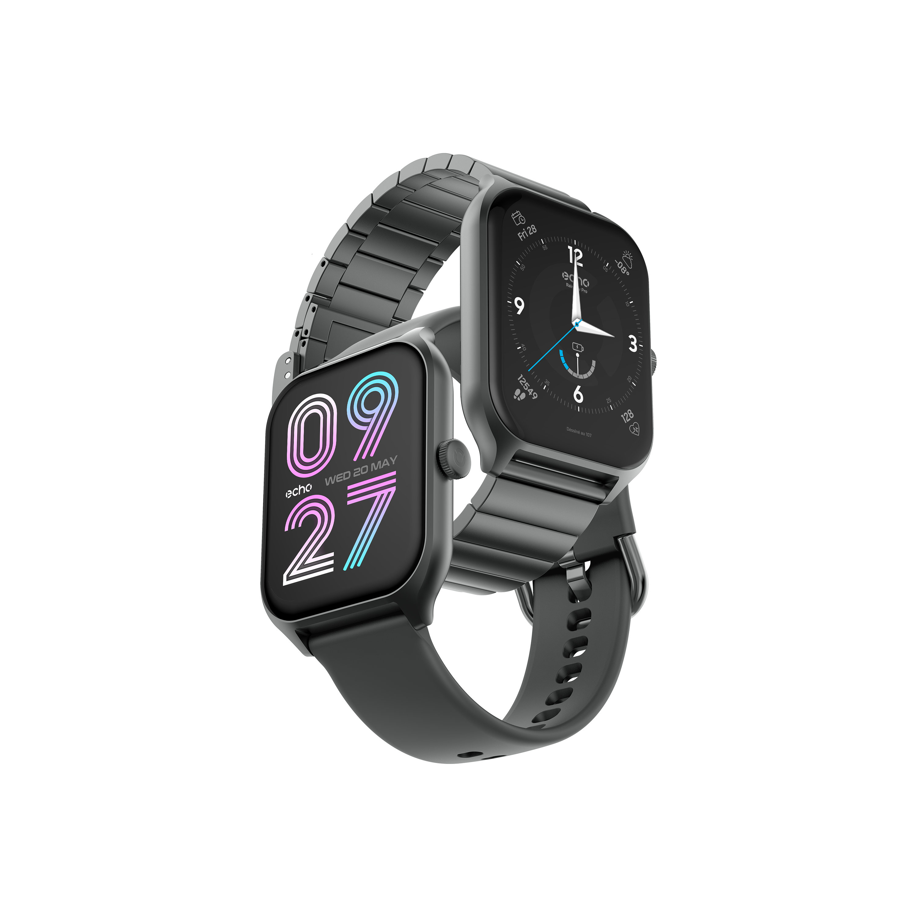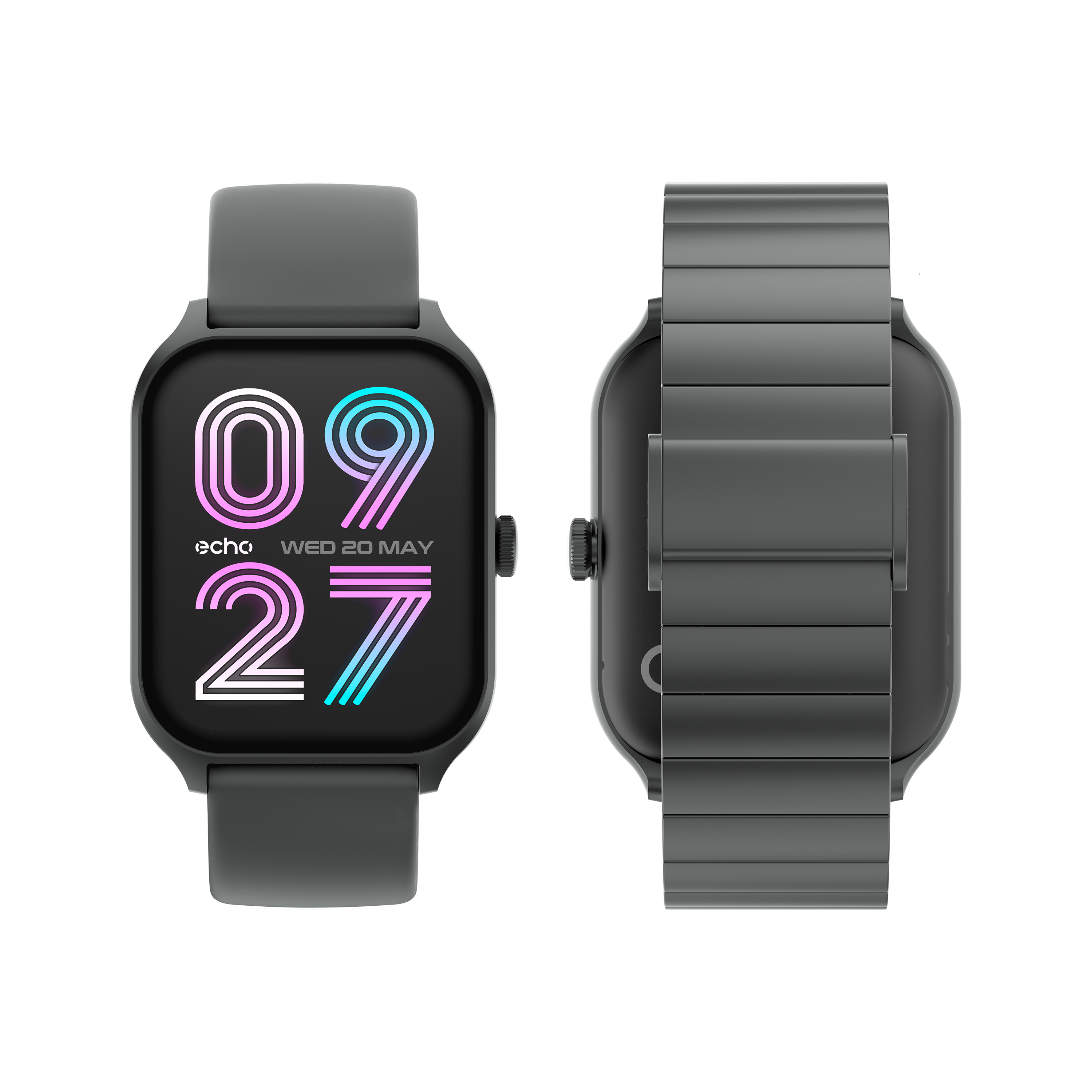 Passer le carrousel d'imagesEcho Rainbow Pro Gris Métal Montre connectée avec 1 bracelet métal + 1 bracelet gomme