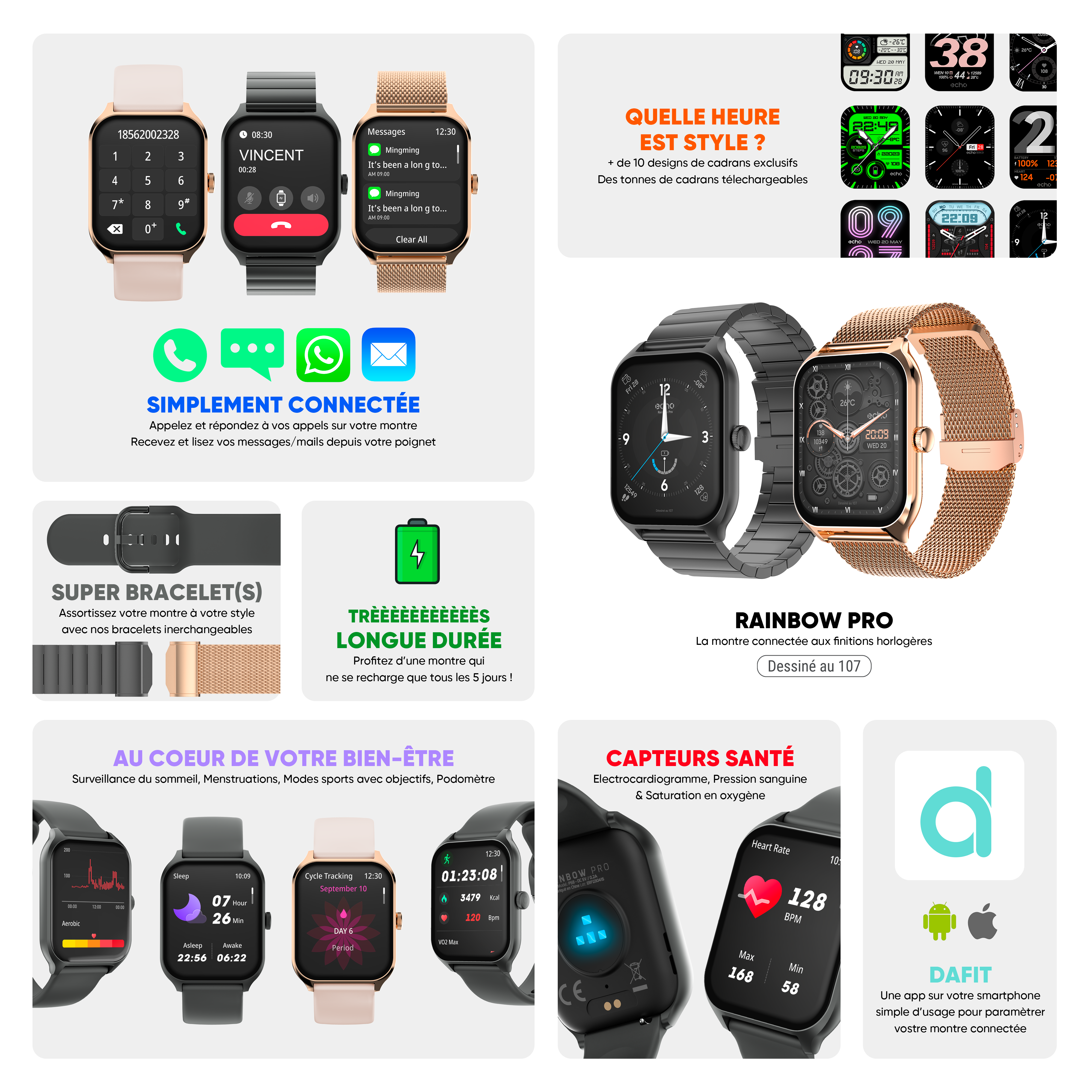 | Libellé | Montre Connectée Echo Rainbow Pro 44mm avec Bracelet Métal & Gomme Gris Métal |