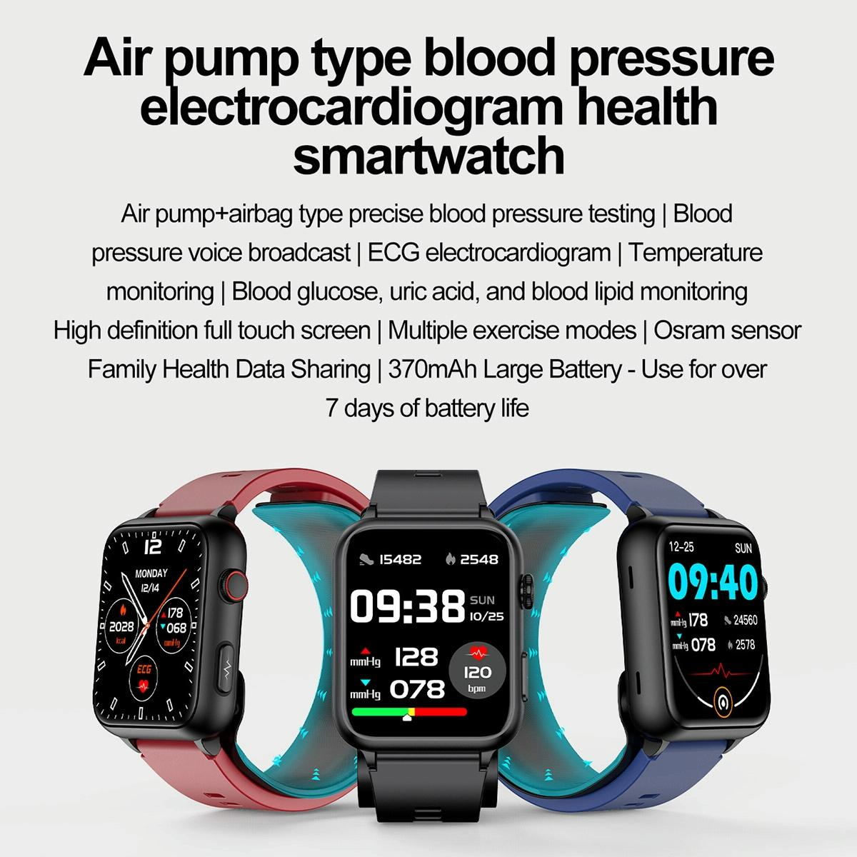 Découvrez la Montre connectée avec écran couleur de 1,91 pouces, offrant une surveillance précise de la pression artérielle grâce à son système air pump + air bag. Elle propose également un électrocardiogramme (ECG) et un diagnostic intelligent AI.