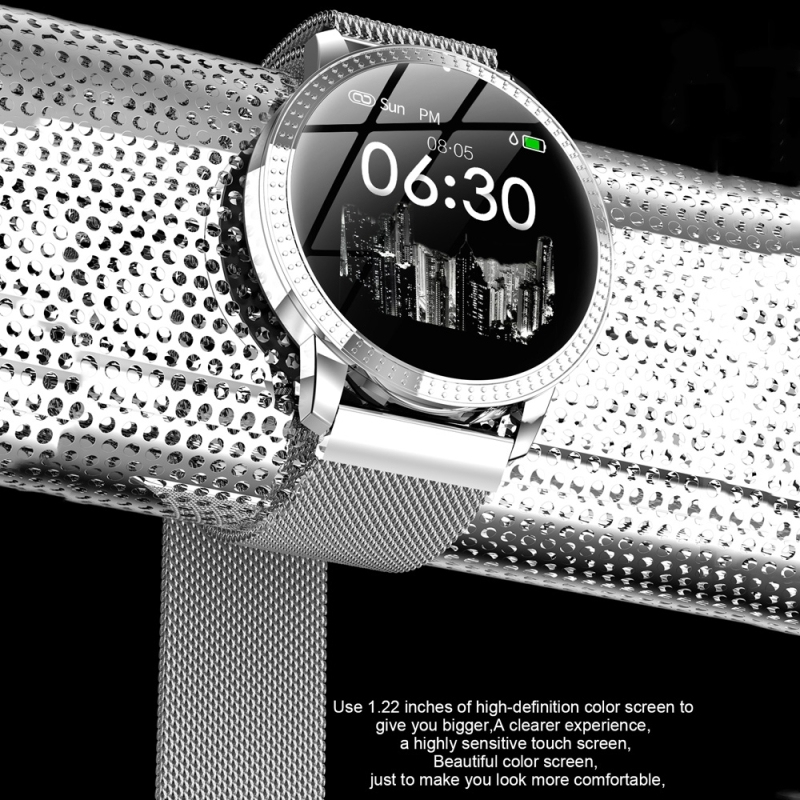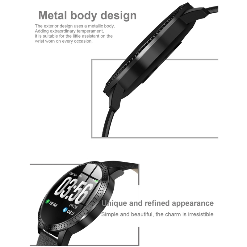 - Fonctionnalités : APP, fonction de surveillance intelligente Bluetooth, horloge, anti-perte, photo de contrôle à distance, podomètre de sport, détection du sommeil, test des calories, rappel sédentaire, rappel d'appels, SMS, appel, WeChat, QQ et autres rappels de notification par vibration