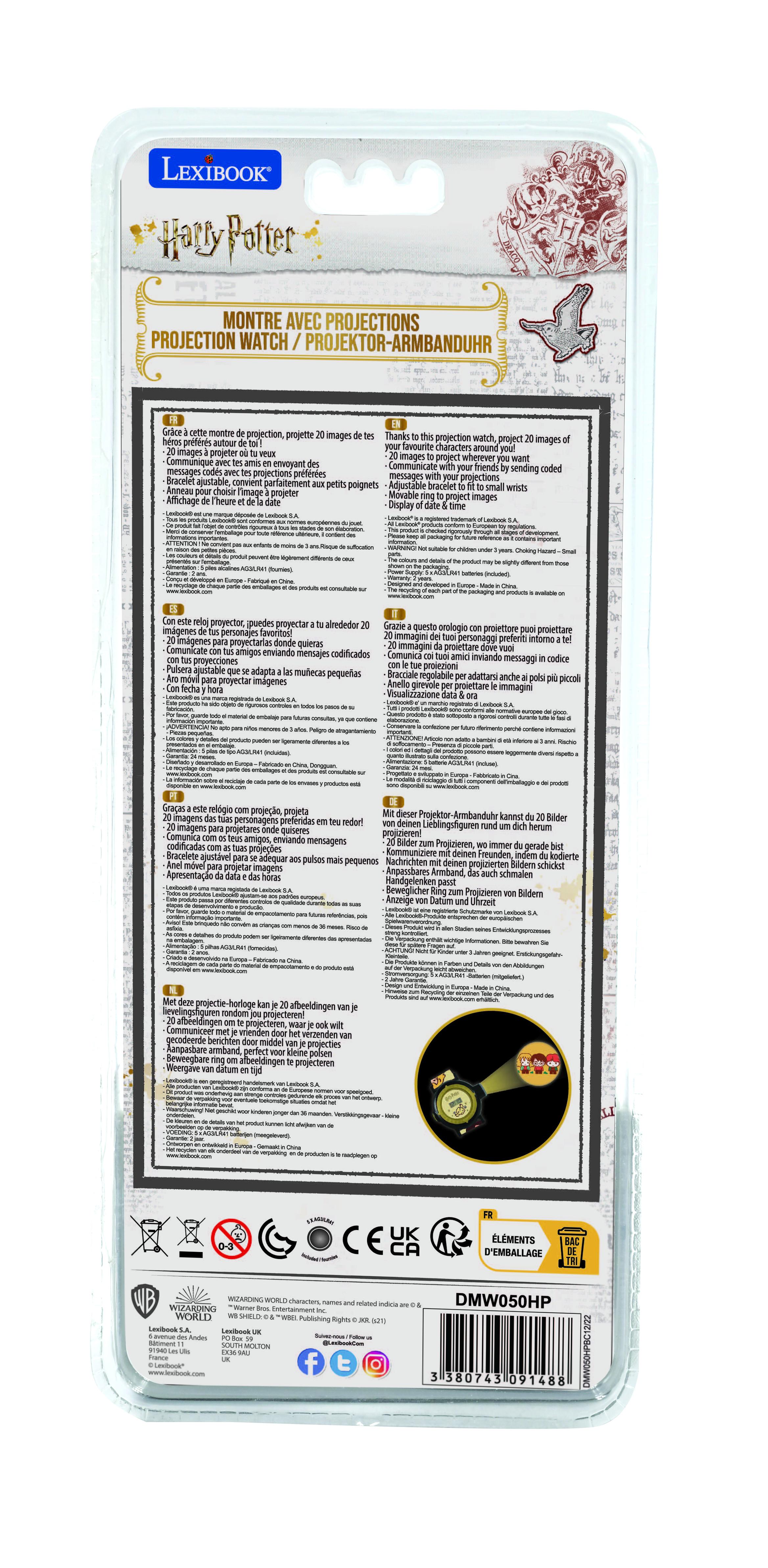 "* Une montre digitale avec design Harry Potter ! * 20 images de l'univers magique de Poudlard � projeter o� tu veux * Communique avec tes amis en envoyant des messages codes avec tes projections pr�f�r�es * Bracelet ajustable, convient parfaitement aux petits poignets * Anneau rotatif pour choisir l�image � projeter * Affichage de l�heure et de la date * Piles incluses"