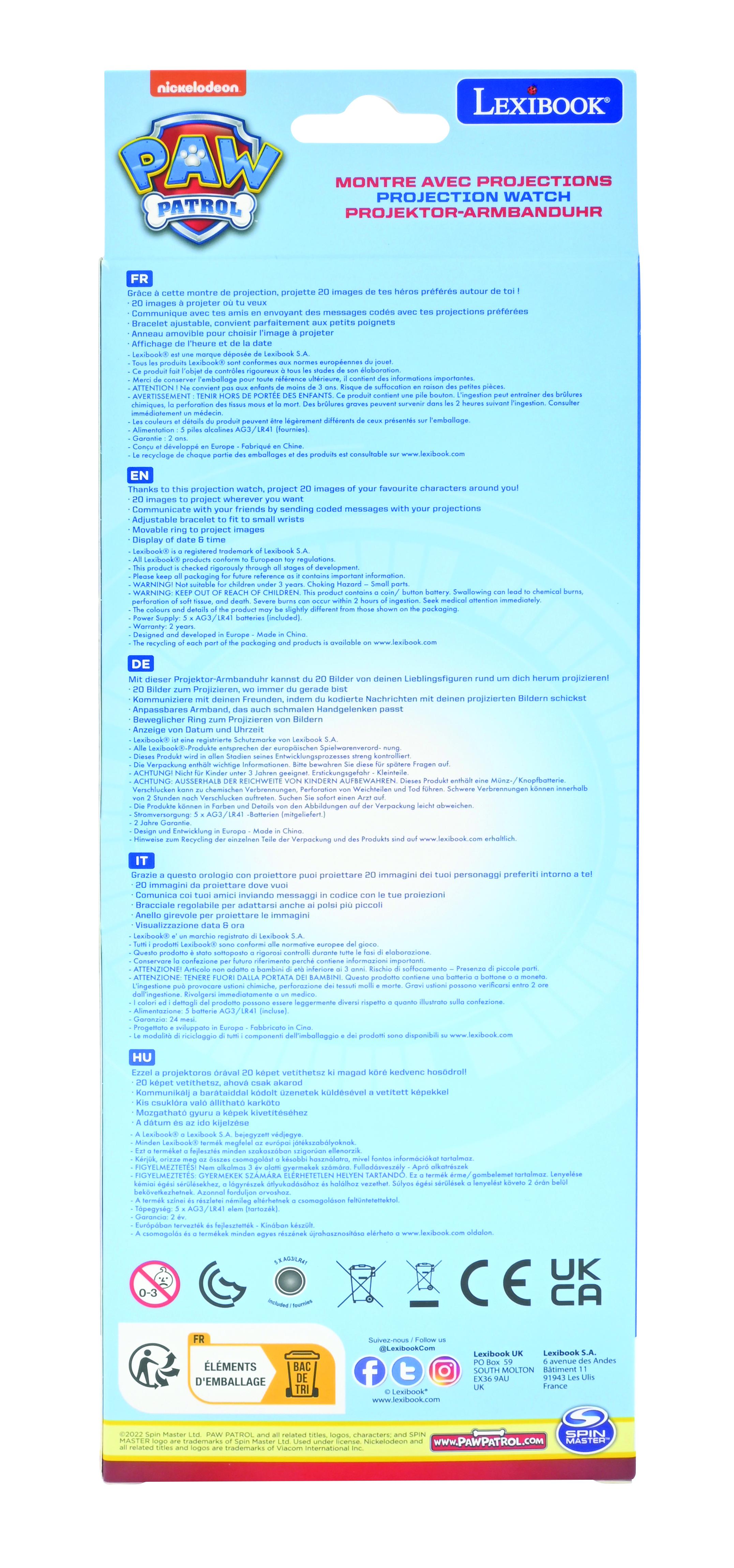 | Libellé | Montre digitale avec projection Pat' Patrouille |