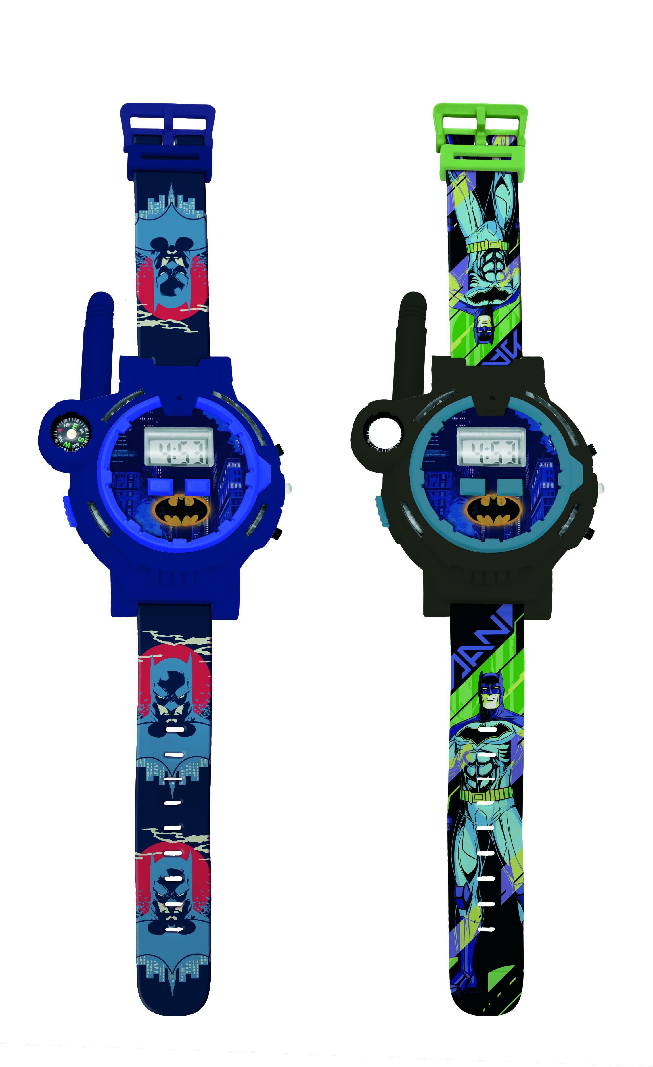 *Montre Talkies Walkies 2 en 1 Batman : communique avec tes amis et donne l'heure. *En plus de donner l'heure, tu peux les utiliser comme talkies-walkies avec une port�e approximative de 200 m�tres. *Ces super horloges comprennent un bouton marche/arr�t, un microphone int�gr�, une boussole (jouet d�imitation), une lampe de poche, une horloge num�rique. *Pile rechargeable par USB et c�ble inclus. *R�ducteur de bruit ambiant intelligent.