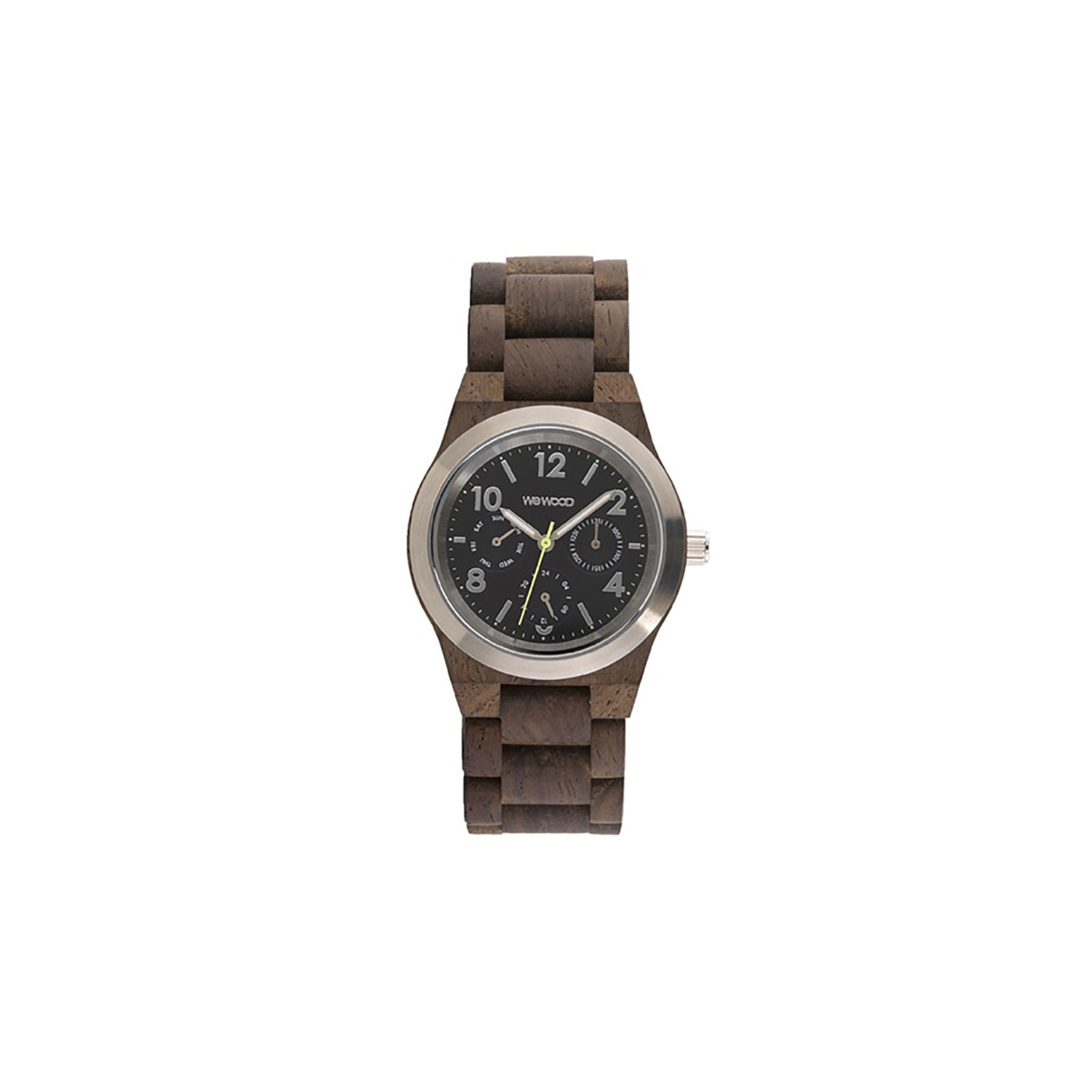 Montre toute en bois de la marque Wewood. Look sport et facile à porter, elle est fabriquée à base de bois recyclé 1 montre achetée = 1 arbre replanté.