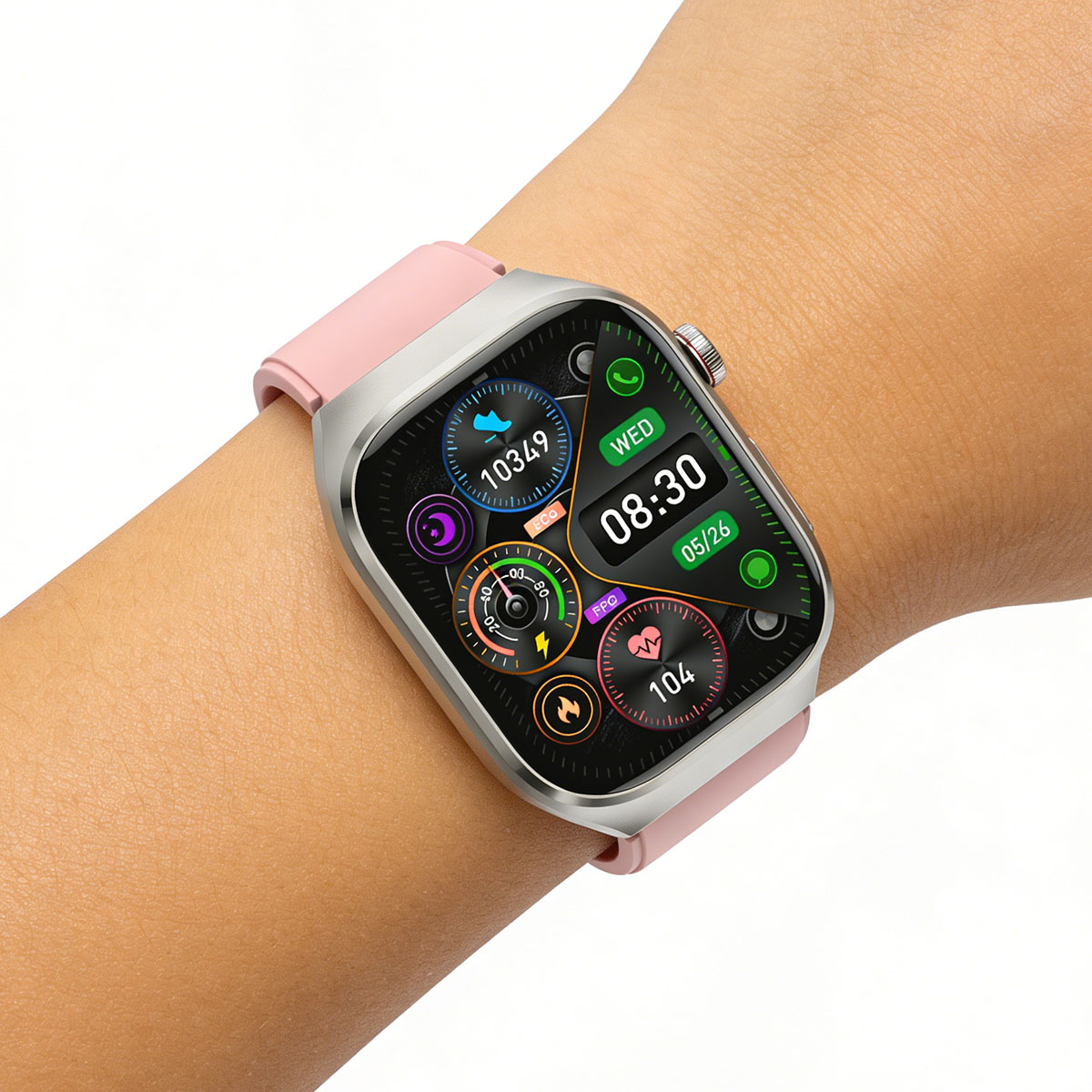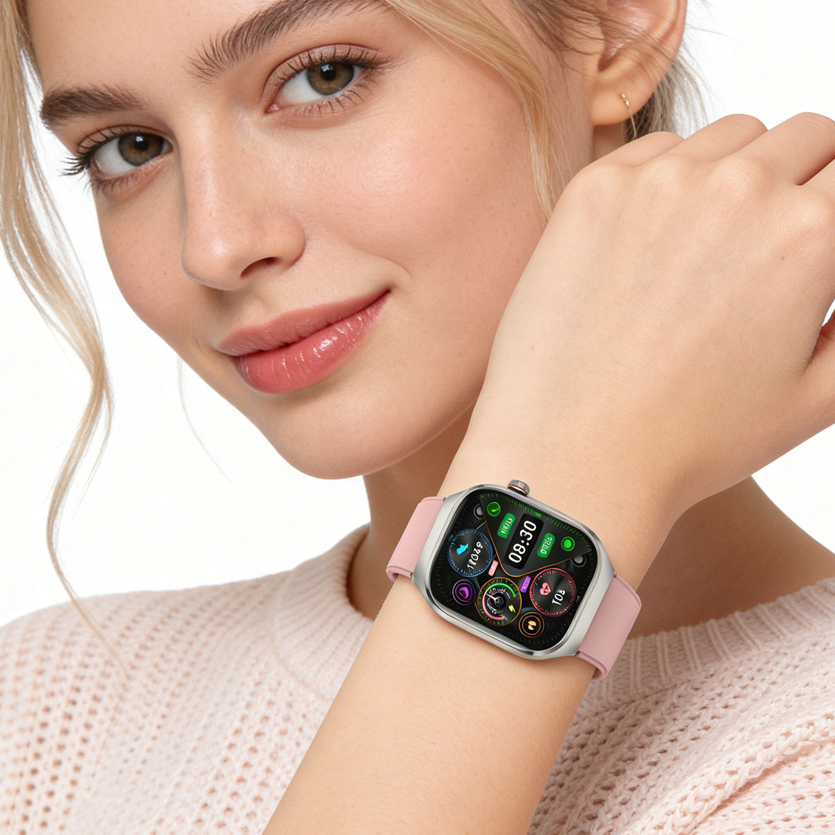 Montre intelligente avec ECG, fréquence cardiaque, tension artérielle, sommeil Pink