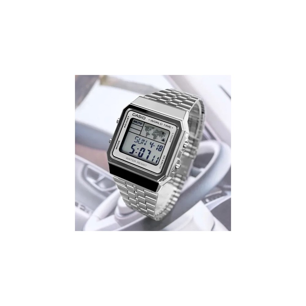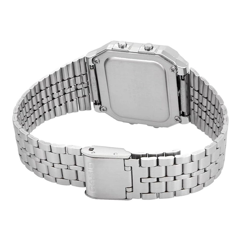Si vous aimez suivre les dernières tendances en matière de mode et accessoires, achetez Montre Homme Casio A500WA-7D Argenté (Ø 39 mm) au meilleur prix.La montre unisexe Casio modèle VINTAGE se présente comme une option polyvalente et fonctionnelle pour ceux qui recherchent un accessoire classique avec des fonctionnalités pratiques. Cette montre multifonction intègre diverses utilités facilitant le contrôle du temps au-delà de l’affichage horaire simple, s’adaptant à différents besoins quotidiens. Son bracelet en acier inoxydable gris garantit une grande durabilité et résistance à l’usure, tout en offrant une finition élégante et sobre qui s’accorde avec tous les styles, masculins comme féminins. Le choix de ne pas inclure de maillons supplémentaires simplifie son ajustement et son usage quotidien, tout en conservant un design compact et confortable. Concernant sa robustesse à l’eau, elle dispose d’une étanchéité de 3 ATM, permettant une utilisation sûre face aux éclaboussures accidentelles ou à l’humidité ambiante, bien qu’elle ne soit pas recommandée pour une immersion prolongée ou des activités aquatiques continues. La combinaison de ces caractéristiques fait du Casio VINTAGE une montre pratique, fiable et au design intemporel, adaptée aux utilisateurs qui apprécient des matériaux de qualité et des fonctions basiques avec une approche unisexe. Dans l’ensemble, ce modèle reflète l’engagement de Casio à offrir des montres à la fabrication solide et au design fonctionnel, convenant à un large public diversifié.Genre: HommeLiens supplémentaires: Nondiamètre approx.: 34 mmType de montre: Montre-braceletFonctions: MultifonctionCouleur: ArgentéMatériau du boîtier de la montre: RésineType de mouvement: QuartzVerre: MinéralImperméabilité: 3 atmInclut: Inclut un étui ou une housse de la marqueType de fermeture: RéglableCouleur du cadran: GrisMatériau du bracelet: Acier inoxydableDiamètre du boîtier de la montre: Ø 39 mm