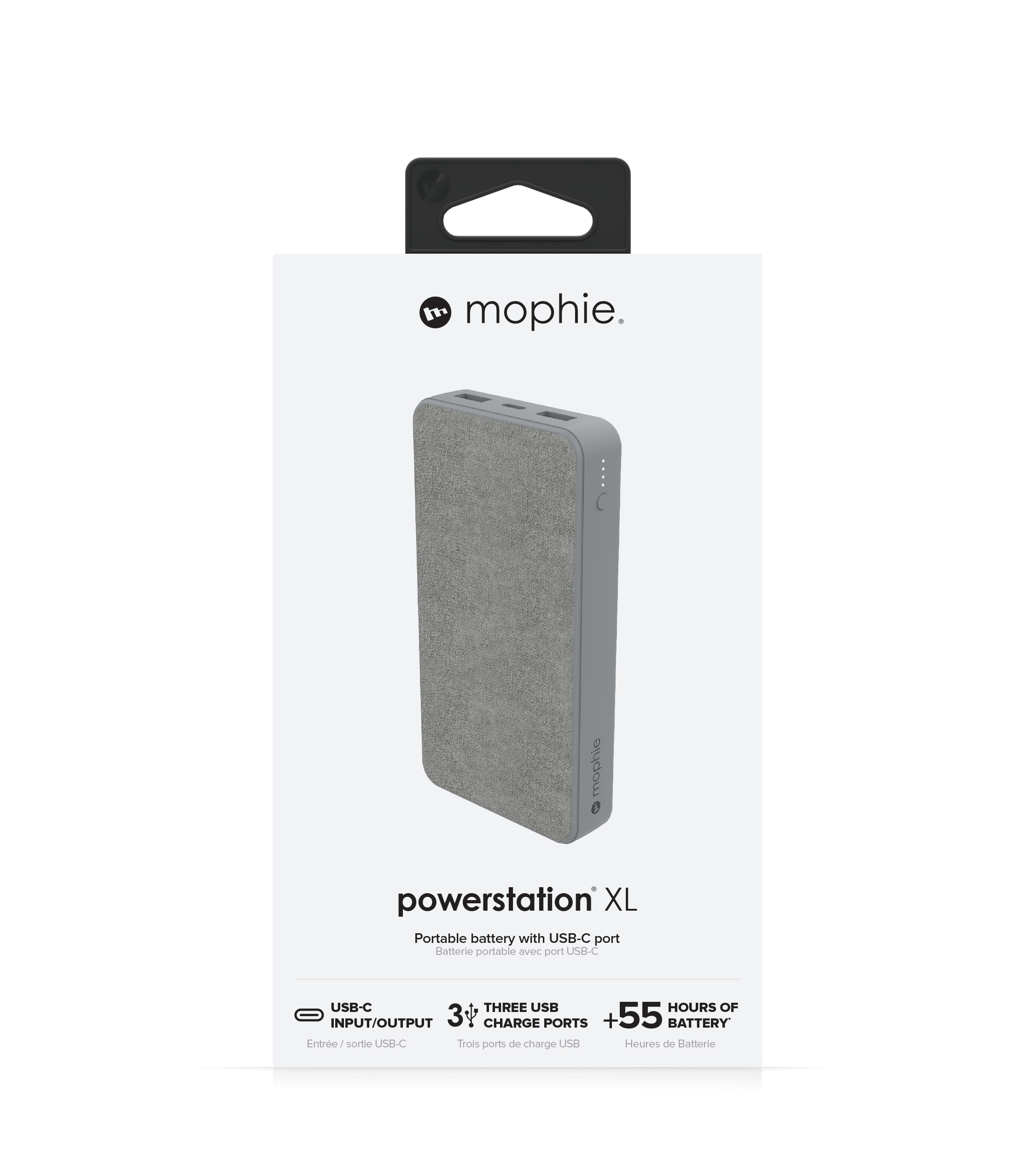 mophie Powerstation XL. Capacité de la batterie: 15000 mAh. Ports de sortie USB de type A: 2, Quantité de ports USB de type C: 1. Couleur du produit: Gris