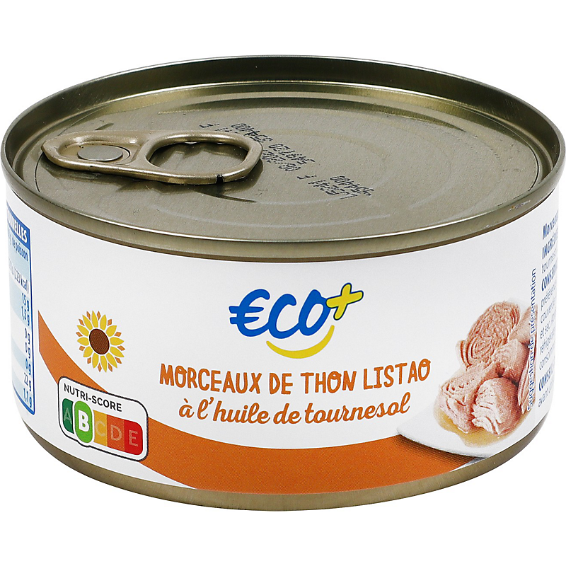 Ingrédients : Thon listao, huile de tournesol 28,9 %, sel.