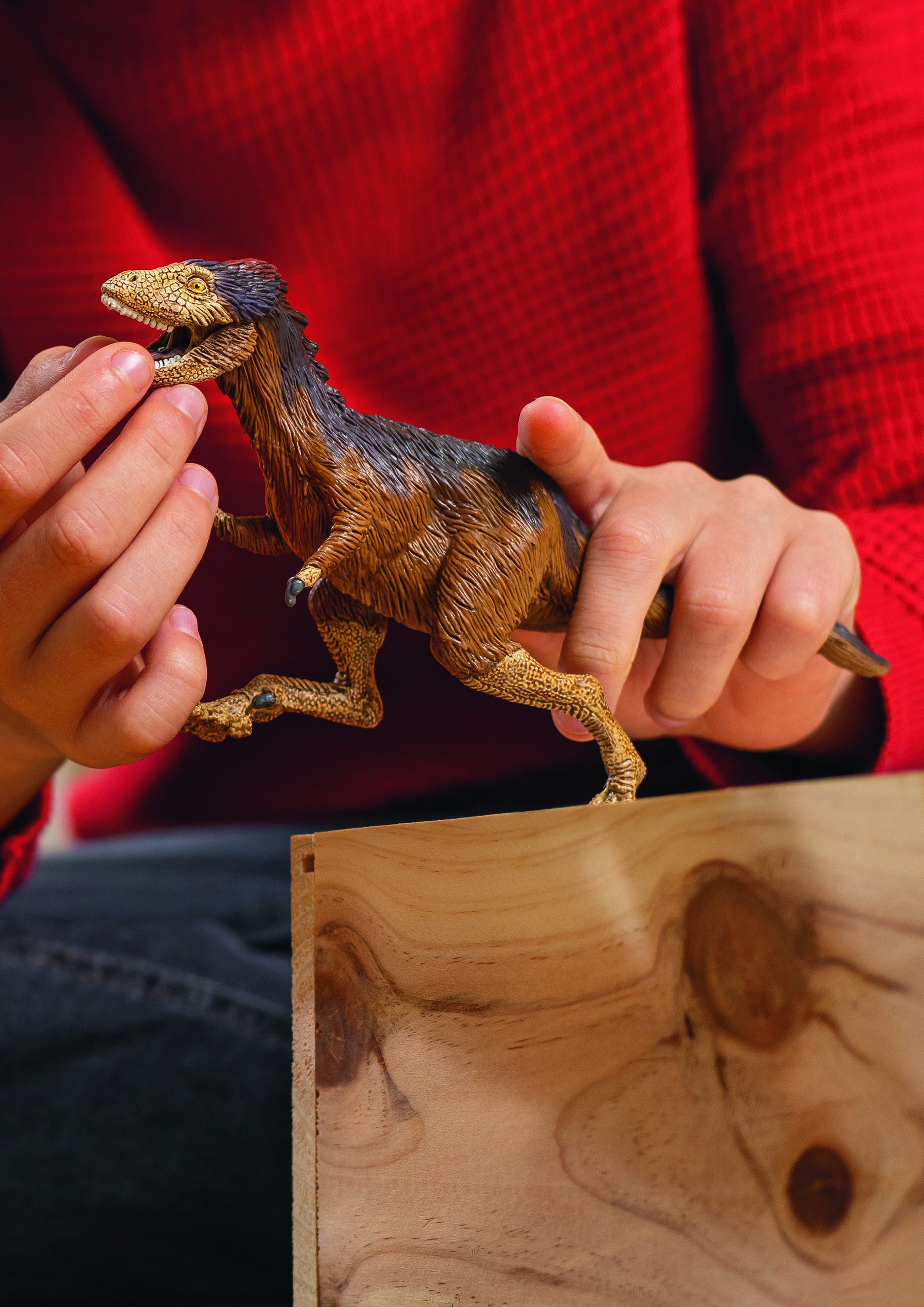 Le Moros intrepidus est une version miniature de son cousin, le célèbre Tyrannosaurus rex. Ses jambes ne mesurent qu’environ 1,20 mètre de long ! Mais attention, il n’est pas inoffensif pour autant... Toujours avide de chair fraîche, c’est un prédateur redoutable et un chasseur aguerri. Le Moros intrepidus est également rapide comme l’éclair. Lorsqu’il referme ses mâchoires sur une proie, elle ne peut pas lui échapper. Face au Moros intrepidus, il vaut mieux se tenir sur ses gardes !