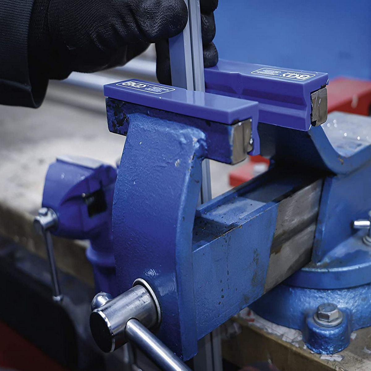 Cette protection tient parfaitement sur les étaux grâce à une bande aimantée.