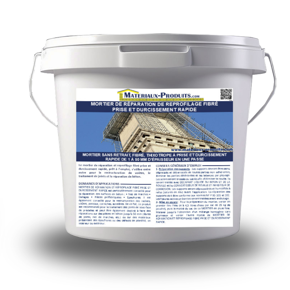 | Libellé | Mortier de réparation et reprofilage fibré prise et durcissement rapide Seau de 12,5 Kg - MORTI110 - MATPRO |