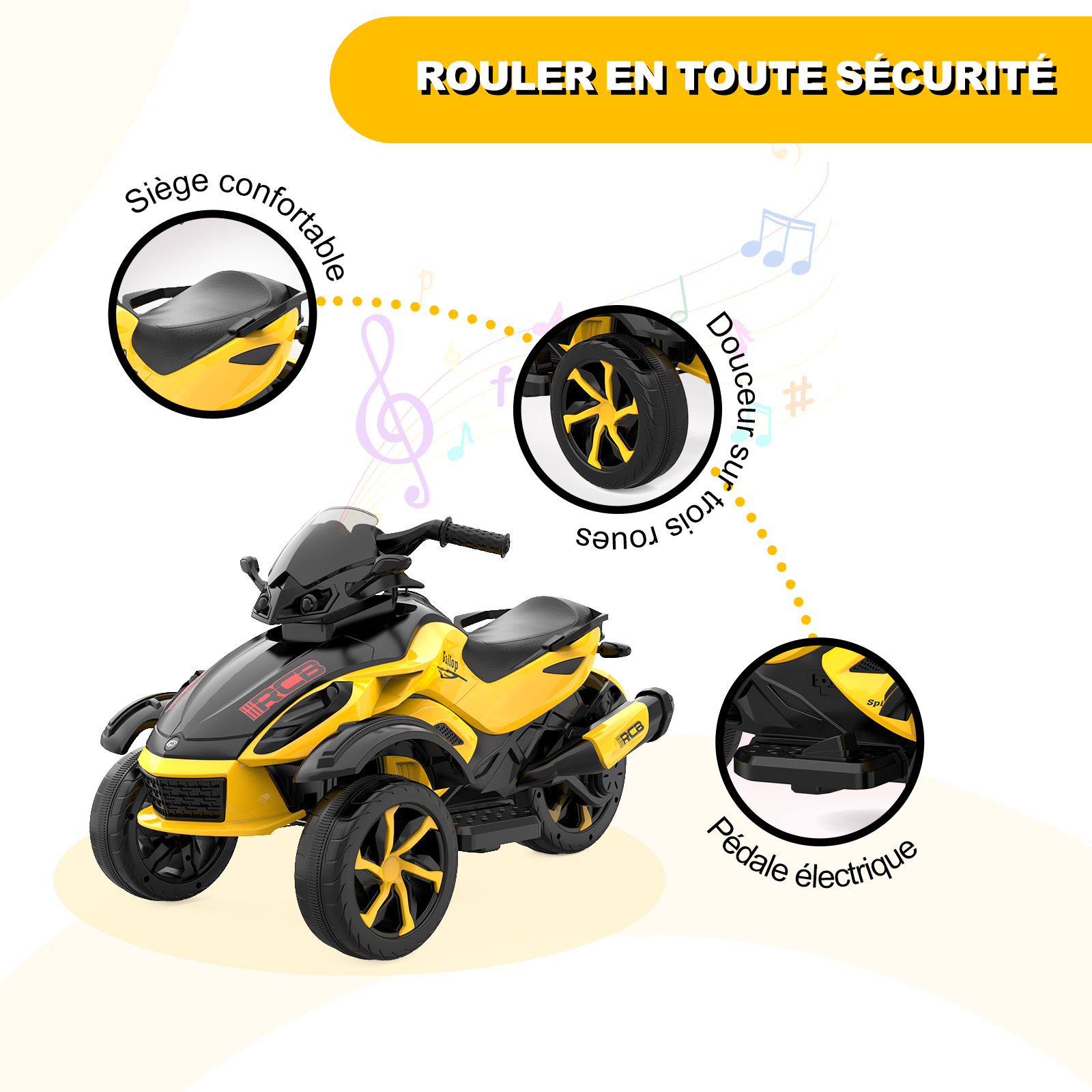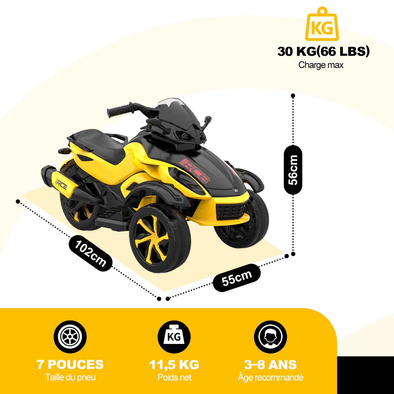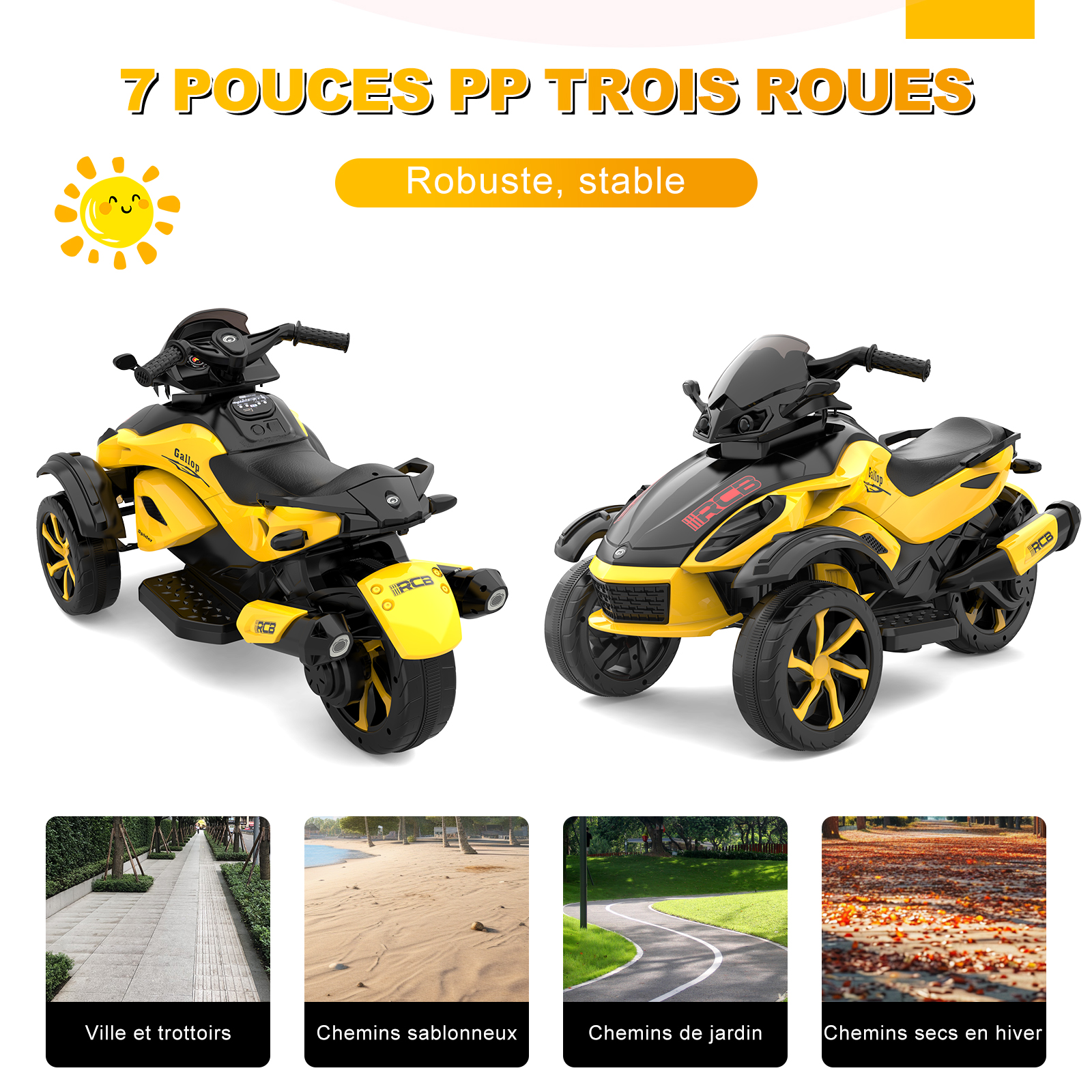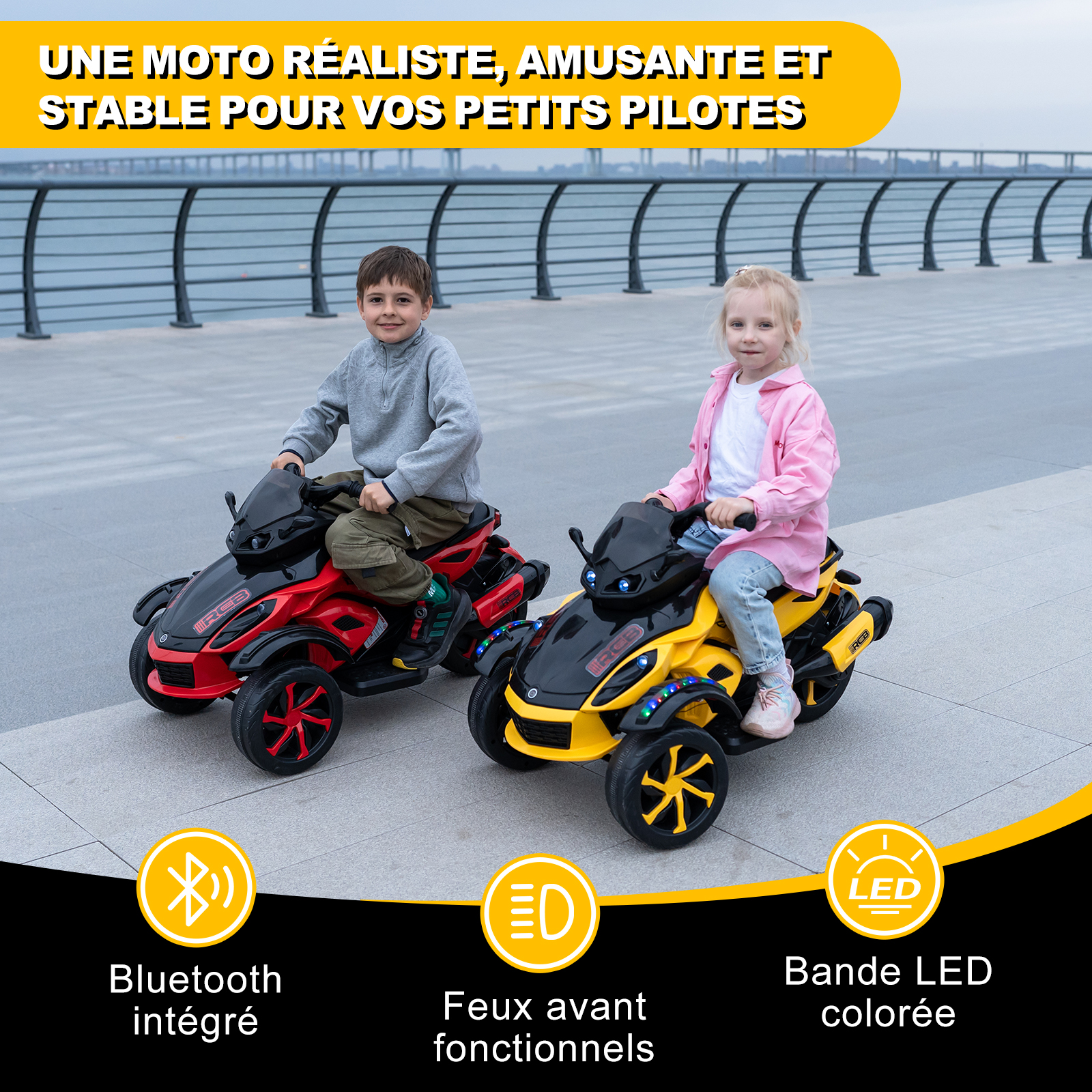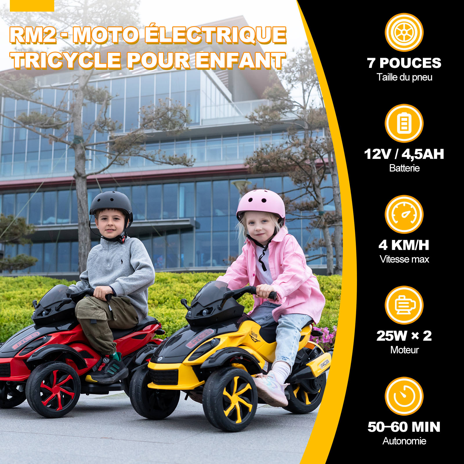 Moto Électrique Enfant Tricycle RCB - 3 Roues - Double Moteur - Batterie 12V - Frein Auto - LED - RM2 Jau