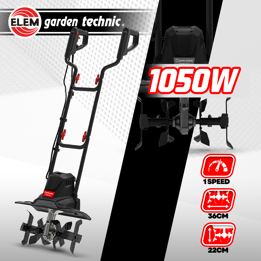 Cette puissante motobineuse électrique 1050w de la marque Elem Garden Technic est l'outil idéal pour l'entretien de son potager ou de son jardin. Elle vous permet un travail rapide et efficace grâce à sa surface de travail d'une largeur de 36 cm. De plus, elle est capable d'atteindre une profondeur de travail de 22 cm. Puissante et légère, cette motobineuse électrique vous offre un confort de travail optimal.