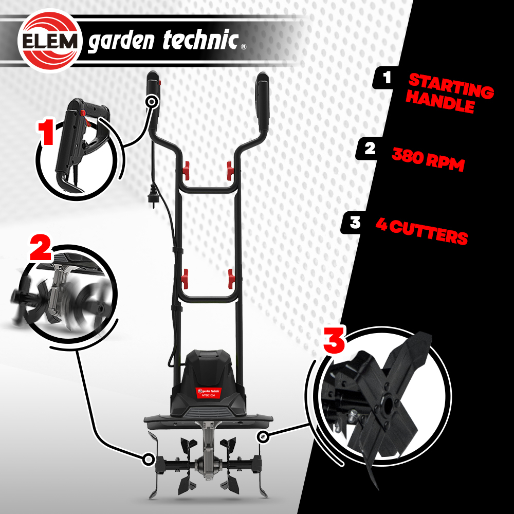 Motobineuse électrique 1050W - 4 fraises - 36cm - Elem Garden