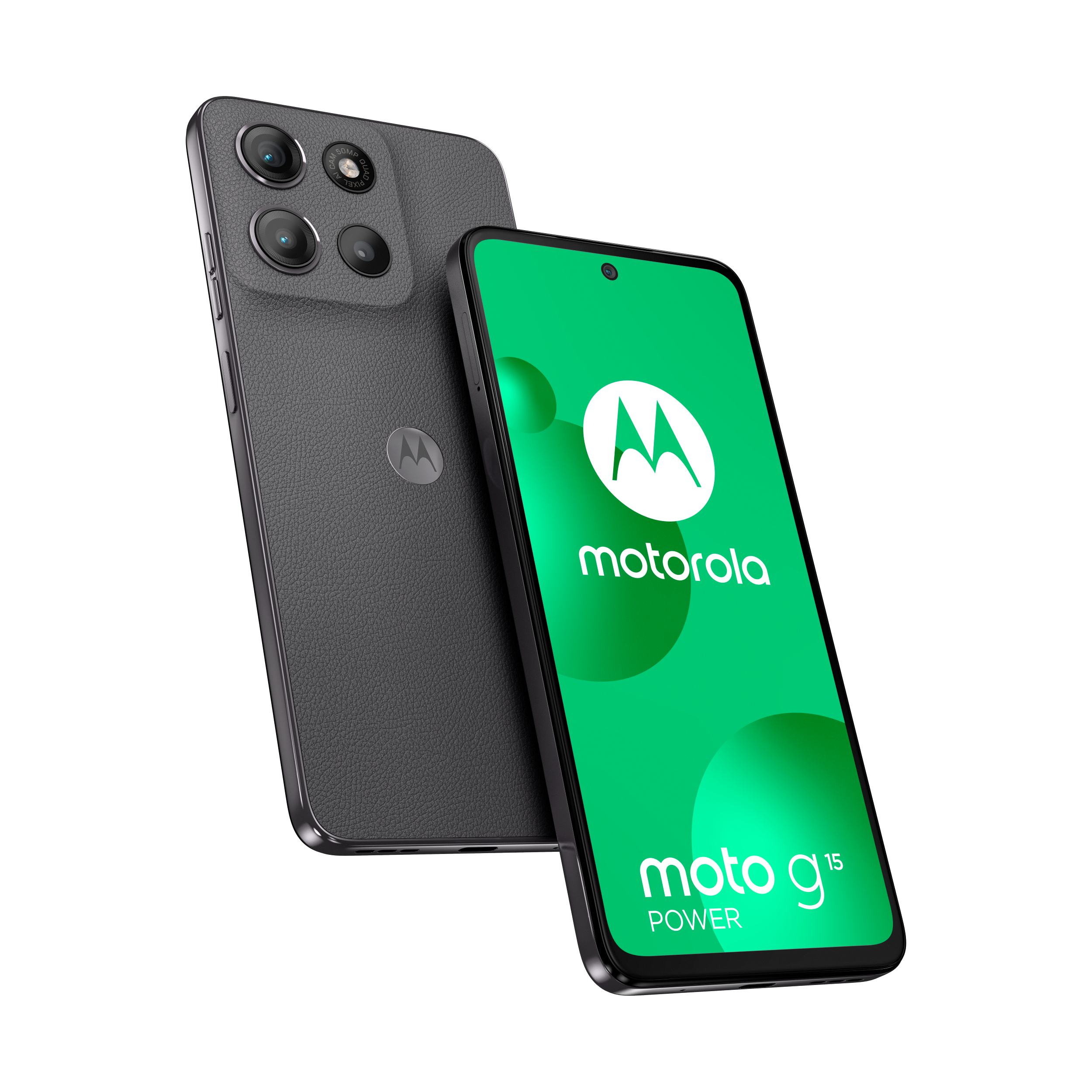Le moto g15 power vous offre le meilleur du divertissement cinématographique. Regardez vos émissions et films préférés sur un écran Full HD+ de 6,72" ultra net et lumineux, même en plein soleil. Plongez dans un son multidirectionnel grâce aux puissants haut-parleurs stéréo avec Bass Boost et Dolby Atmos®. Capturez des photos magnifiquement détaillées avec l’appareil photo de 50 MP(1), éliminant les barres disgracieuses dues aux sources de lumière artificielle. Rechargez rapidement votre smartphone grâce au chargeur TurboPower™(2) et profitez d’une autonomie prolongée avec une batterie de 6 000 mAh. Le cuir vegan lui confère un style haut de gamme et son design résistant aux éclaboussures(3) et le verre Corning® Gorilla® Glass 3 renforcent sa protection. Bénéficiez de performances rapides et d’une grande capacité de stockage pour ne jamais être à court d’espace pour vos divertissements. Faites preuve d’audace avec le moto g15 power.