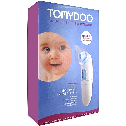 Tomydoo Mouche Bébé Électrique permet une aspiration efficace et régulière des sécrétions nasales de bébé, pour un mouchage en profondeur et en douceur. Peu importe la nature des sécrétions : claires ou épaisses, Tomydoo permet de les extraire grâce à ses 3 embouts en silicone différents. En quelques secondes seulement, bébé est soulagé. Le nettoyage est facile et rapide, la stérilisation possible. Le produit est livré avec : - 3 embouts différents, - 2 joints en silicone, - une pochette de transport, - 2 piles AA-LR6.