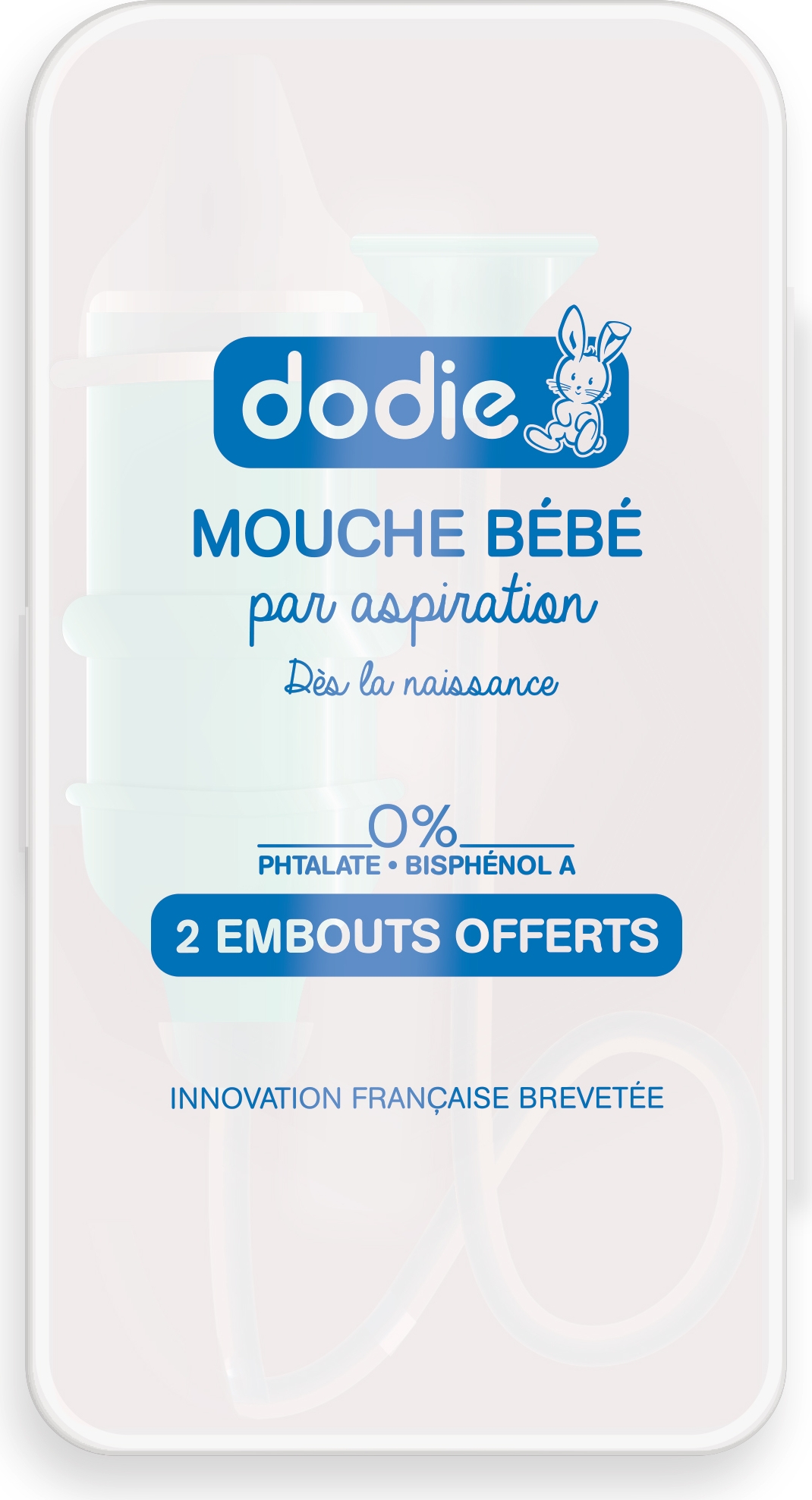 Innovation française brevetée, le Dodie Mouche Bébé par Aspiration + 2 Embouts Offerts, testé et approuvé en cabinet pédiatrique est un dispositif médical qui permet de nettoyer le nez de bébé dès la naissance, simplement et en douceur, par aspiration. Pratique et hygiénique, le mouche bébé est à utiliser avec un embout nasal à usage unique et est ici contenu dans sa boite de rangement. Simple d'utilisation il est aussi facile à nettoyer.