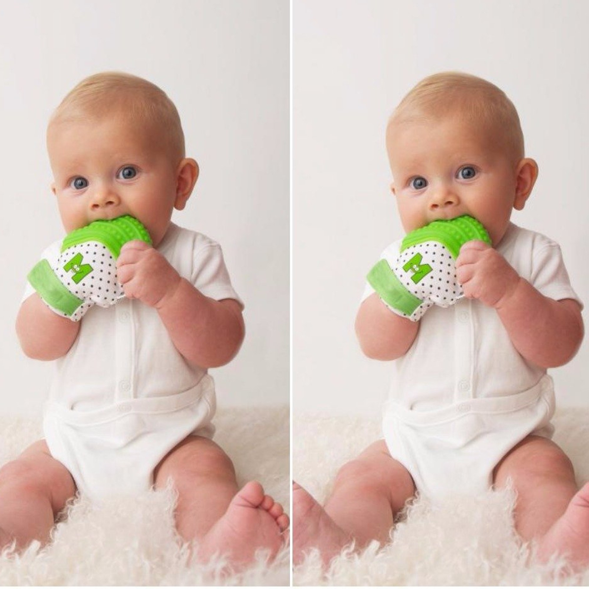 Pratique, la mitaine reste de loin la meilleure solution pour apaiser les douleurs dentaires des tout-petits ne pouvant pas encore tenir correctement les jouets de dentition classiques tels que les anneaux de dentition.