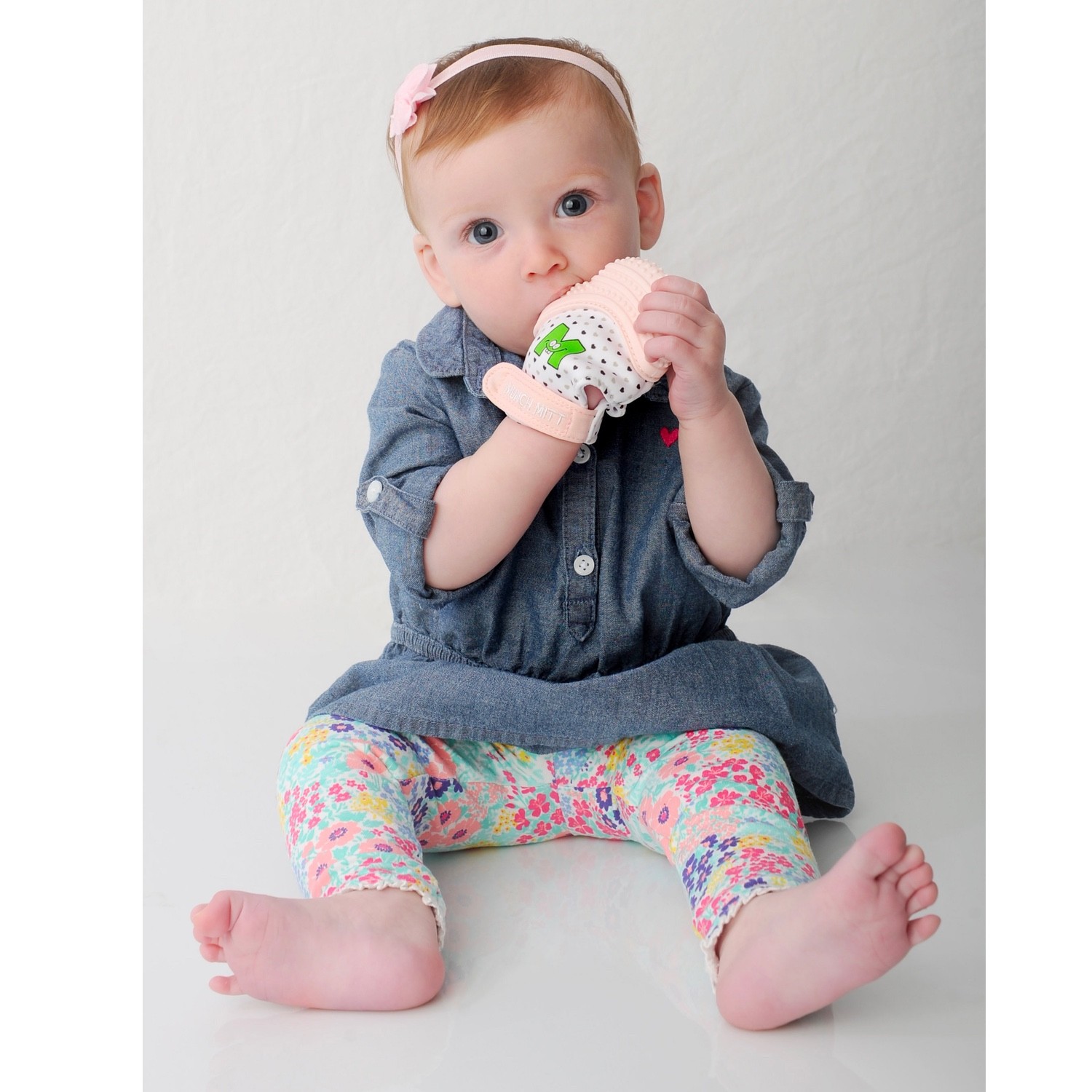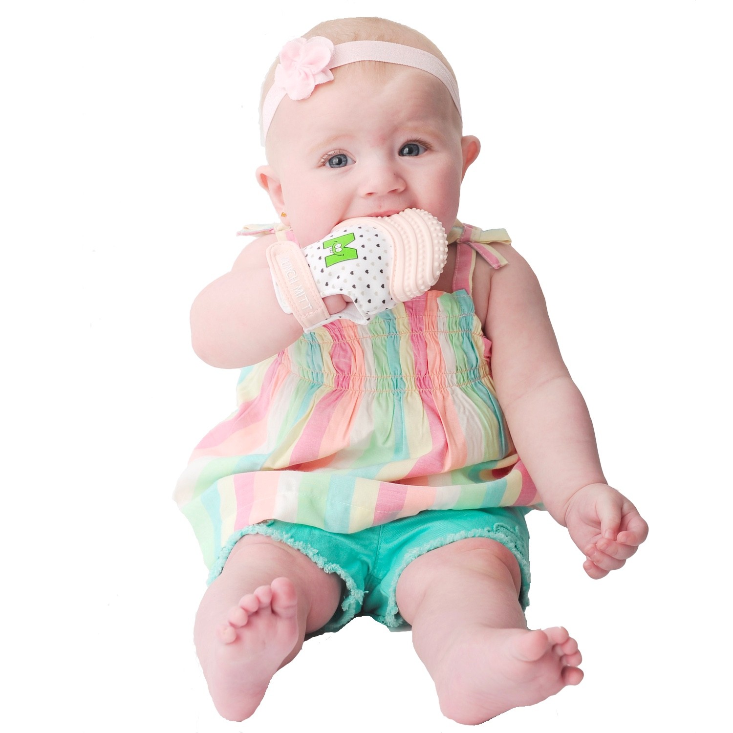 Pratique, la mitaine reste de loin la meilleure solution pour apaiser les douleurs dentaires des tout-petits ne pouvant pas encore tenir correctement les jouets de dentition classiques tels que les anneaux de dentition.