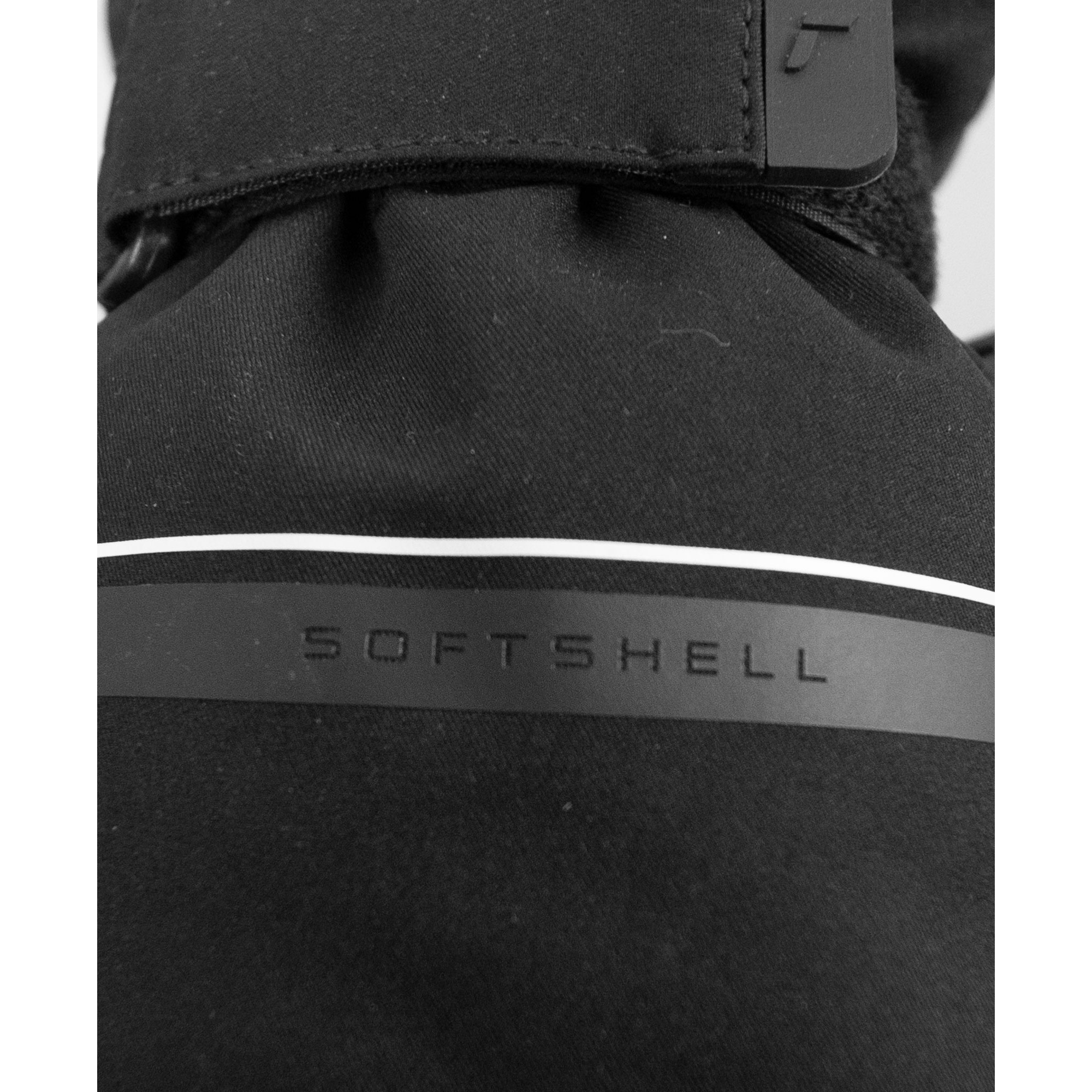 Moufle softshell imperméable avec une longue manchette, un poignet réglable et un système de stoppeur intelligent pour garder la neige à l'extérieur du gant.80% Polyester, 15% Polyuréthane, 5% Elastane