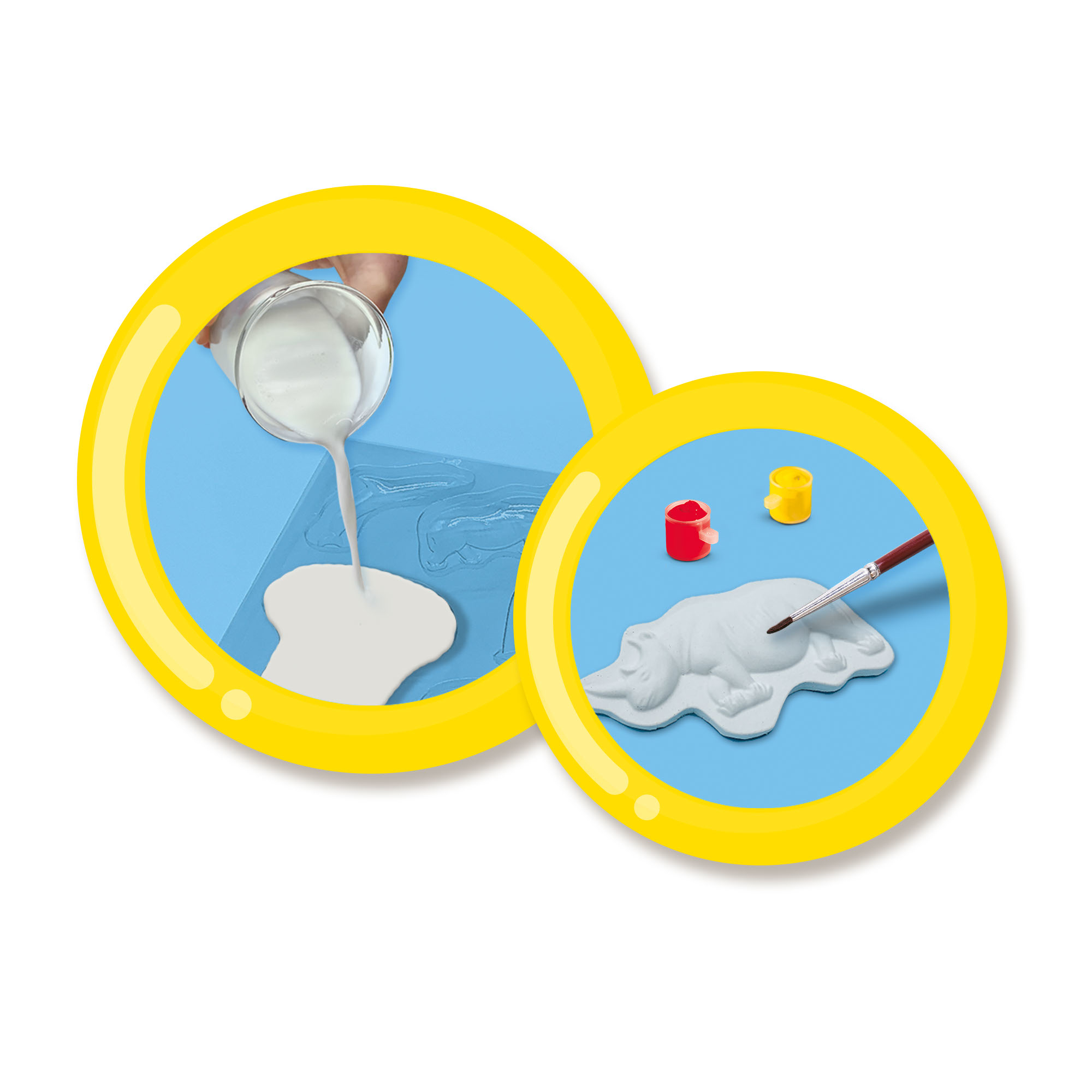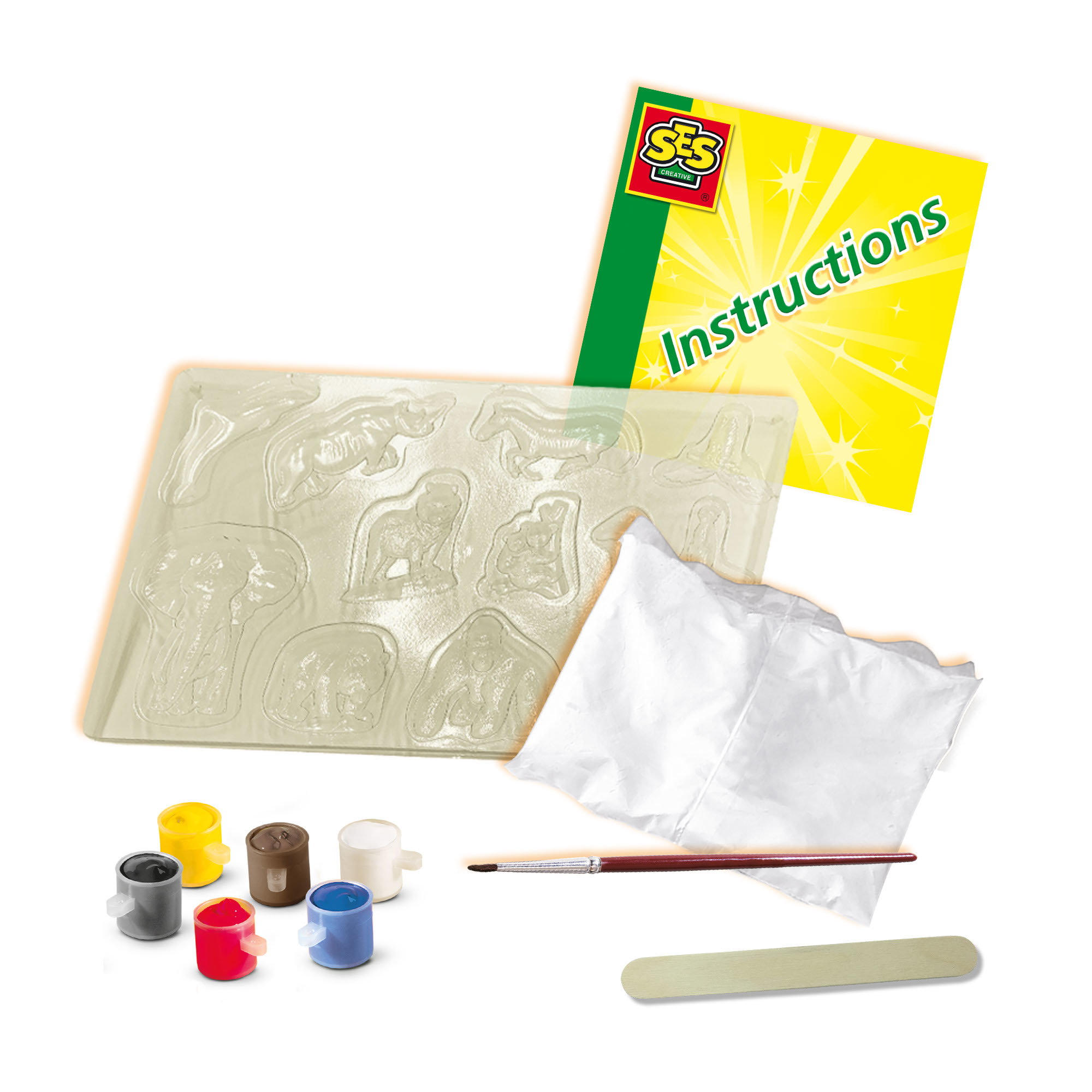 Avec ce kit SES, tu peux fabriquer 11 animaux en plâtre. Verse le plâtre dans le moule, laisse sécher puis peins comme tu le souhaites. Tu peux facilement fabriquer tes propres animaux de zoo : des éléphants, des dauphins, des zèbres, des tigres, des gorilles, des perroquets, des rhinocéros, des pandas, des koalas, des girafes et des suricates. C’est amusant à faire et le résultat est impressionnant !