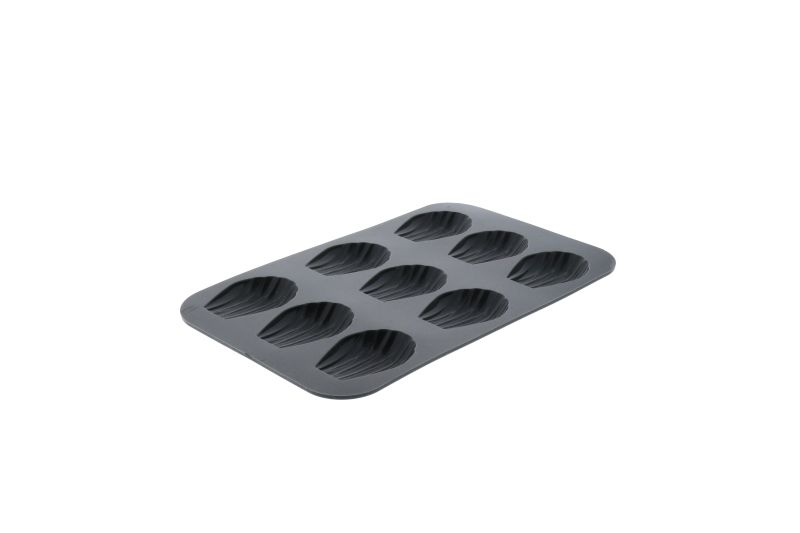 Moule pour 9 madeleines - silicone - anti-adhésif - couleur grise - utilisation micro-ondes, four et congélateur