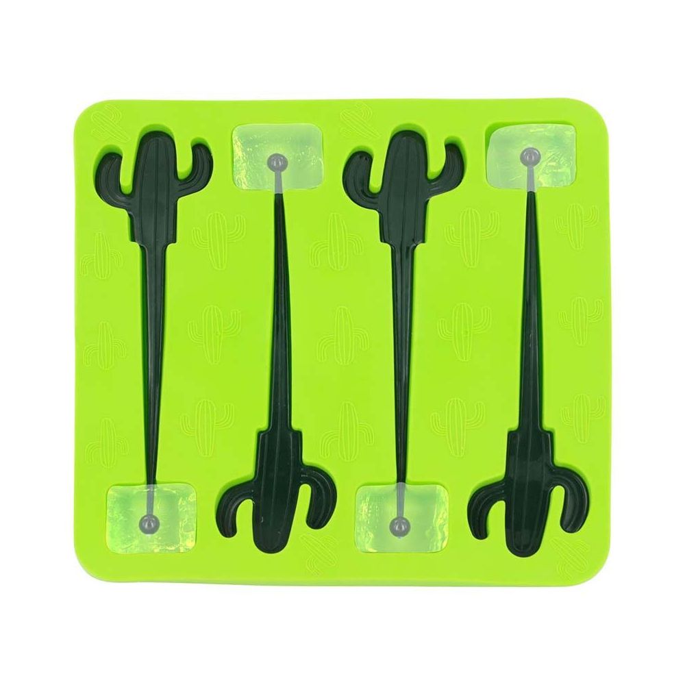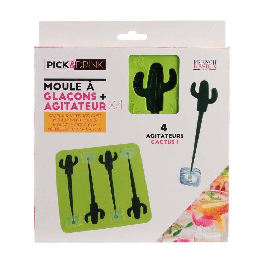 Libellé Moule à glaçons avec 4 agitateurs cactus