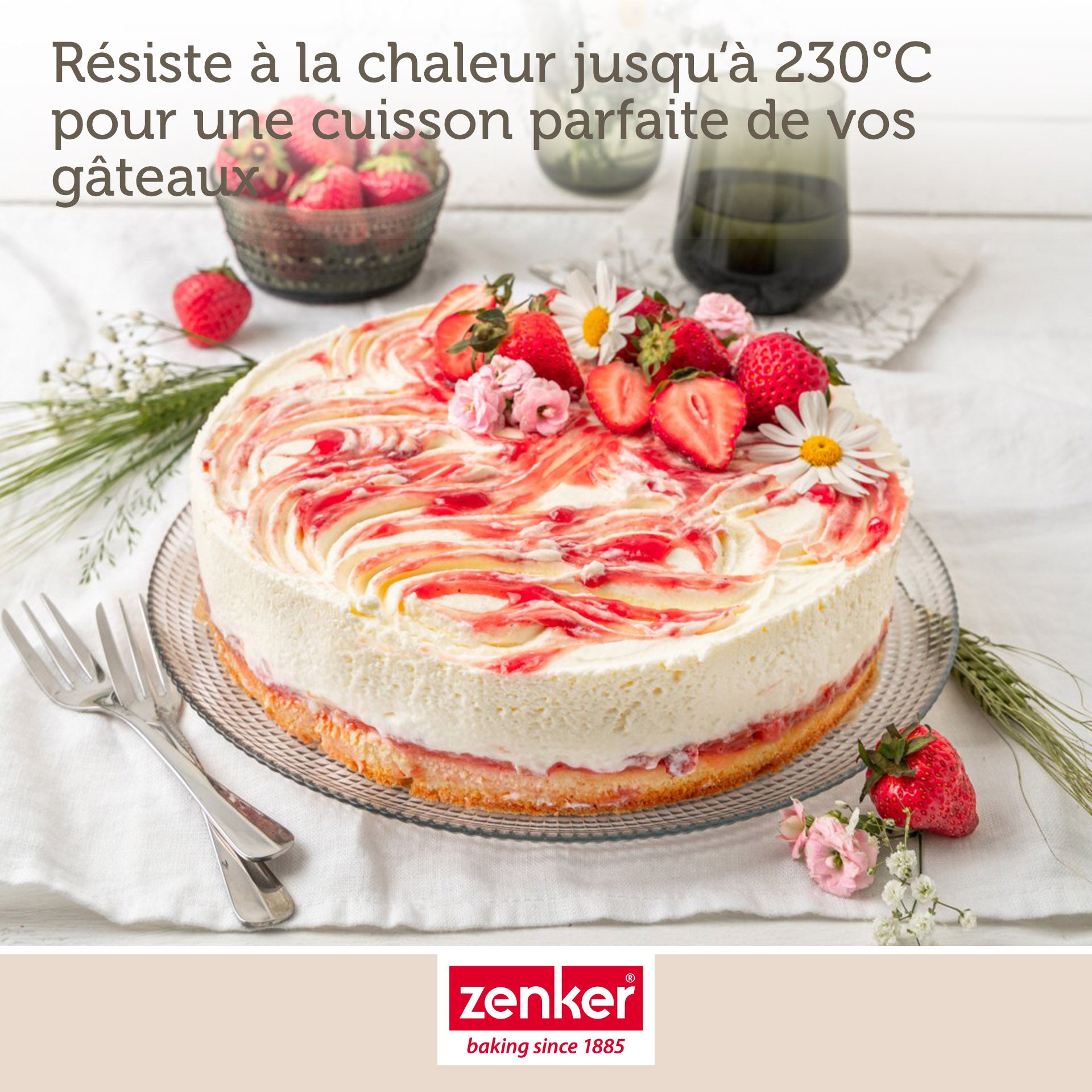 DESCRIPTION : Moule à manqué de 24 cm de diamètre pour faire de délicieux gâteaux natures, au chocolat ou aux fruits LE PETIT + : De haute qualité, ce moule fabriqué en Allemagne est garanti 5 ans COMPOSITION : Acier inoxydable avec un revêtement en Téflon antiadhérent DIMENSIONS : 24 x 24 x 6,5 cm UTILISATION : Dans ce moule rond vous pourrez faire cuire un gâteau jusque 230°C mais vous pourrez aussi préparer des gâteaux froids ENTRETIEN : Ce moule à manqué se lave à la main Ce moule à gâteaux est un moule à manqué, ce nom provient d'un chef pâtissier qui avait raté les blancs en neige qu'il devait incorporer dans sa recette de gâteau. Ne souhaitant pas gaspiller sa préparation, il a tout de même réalisé un gâteau qu'il appelé le gâteau manqué. Zenker est une marque faisant partie du groupe Fackelmann Brands et elle propose une large gamme d'ustensiles de pâtisserie et de moules à gâteaux. Concernant les ustensiles de pâtisserie, Zenker frappe fort en mettant à disposition des ustensiles de préparation mais aussi de décoration pour les pâtissiers confirmés. Côté moules à gâteaux c'est une marque pionnière qui propose des innovations telles que les moules à gâteaux en silicone et fibre de verre ne nécessitant pas de matière grasse et proposant des résultats de cuisson incroyables. Zenker possède donc une large gamme d'accessoires et d'ustensiles pour vous accompagner dans vos recettes du quotidien mais aussi pour des évènements exceptionnels comme les fêtes, les anniversaires, les mariages, etc.