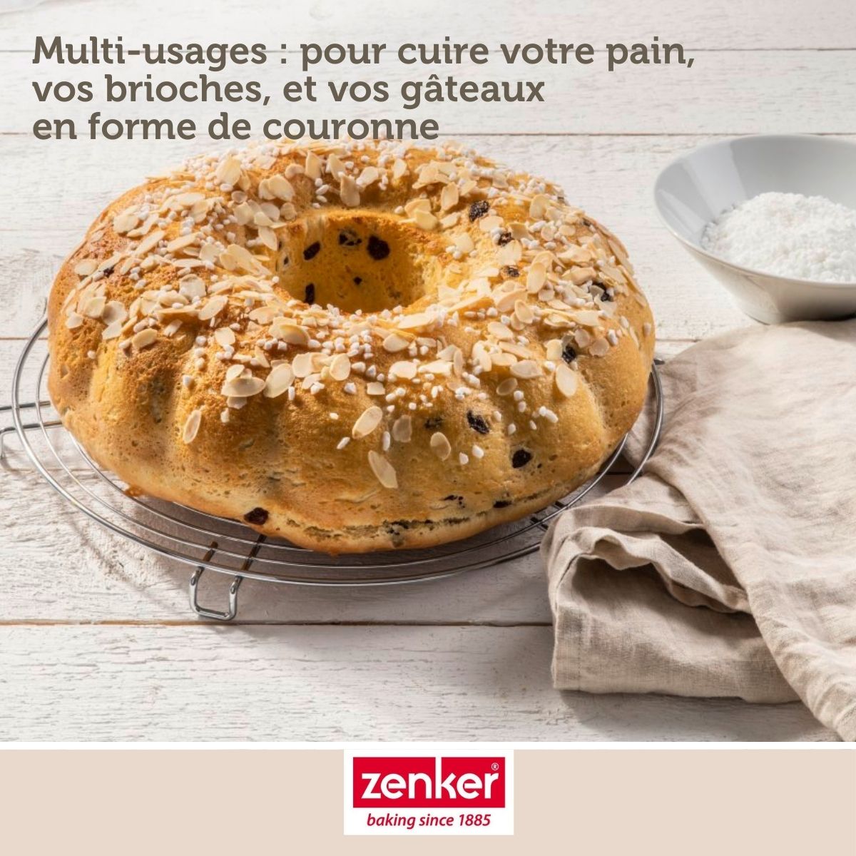 DESCRIPTION : Moule à pain avec cheminée pour fabriquer votre pain maison LE PETIT + : Dans ce moule à pain en couronne vous pourrez préparer du pain maison, de la brioche maison ou bien n'importe quel gâteau COMPOSITION : Acier inoxydable avec un revêtement en Téflon antiadhésif DIMENSIONS : 32 x 9 cm CONTENU : 1 moule à pain couronne Le moule à gâteau en forme de couronne est généralement appelé moule à savarin. Ce moule à gâteau a un autre objectif, celui de moule à pain. Effectivement, grâce à ce moule à pain vous pourrez cuire votre pain fait maison. Vous pourrez également y faire cuire des brioches et autres gâteaux. Zenker est une marque faisant partie du groupe Fackelmann Brands et elle propose une large gamme d'ustensiles de pâtisserie et de moules à gâteaux. Concernant les ustensiles de pâtisserie, Zenker frappe fort en mettant à disposition des ustensiles de préparation mais aussi de décoration pour les pâtissiers confirmés. Côté moules à gâteaux c'est une marque pionnière qui propose des innovations telles que les moules à gâteaux en silicone et fibre de verre ne nécessitant pas de matière grasse et proposant des résultats de cuisson incroyables. Zenker possède donc une large gamme d'accessoires et d'ustensiles pour vous accompagner dans vos recettes du quotidien mais aussi pour des évènements exceptionnels comme les fêtes, les anniversaires, les mariages, etc.