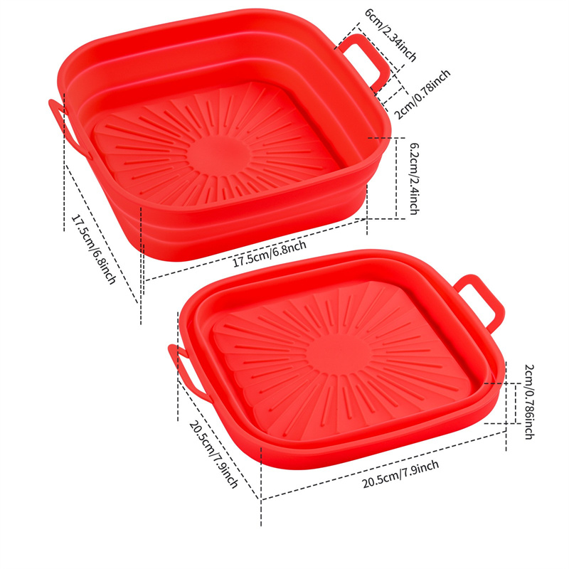 Moule en silicone carré pliable pour friteuse à air 17,5 cm Red
