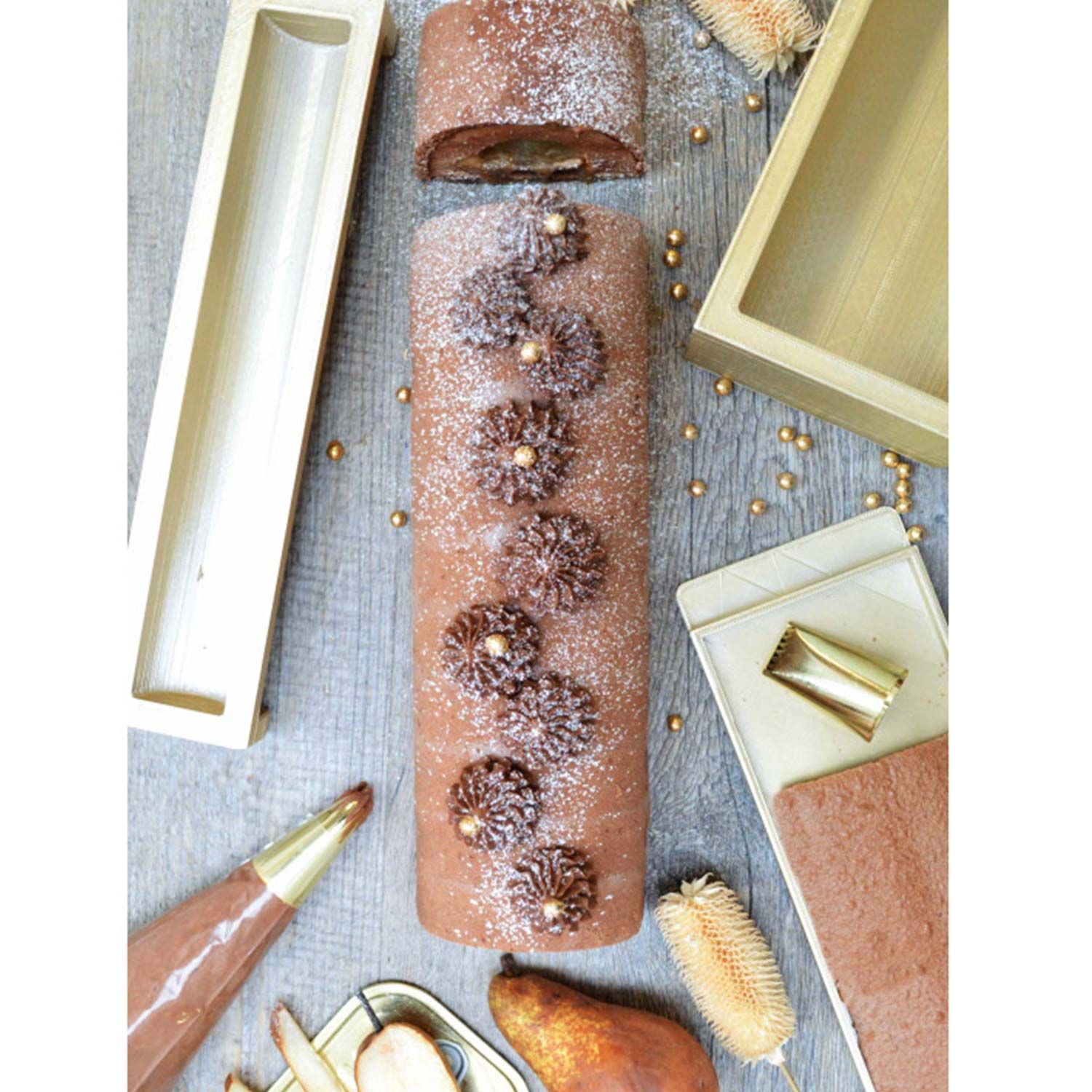 Avec ce moule à insert bûche de Noël, obtenez une bûche qui se démarque et qui épate la galerie ! une recette de bûche au chocolat, poire et caramel est incluse. Ce moule passe au réfrigérateur, au congélateur, au micro-ondes, au four et au lave-vaisselle. Dimensions du moule : L25 x l3,5 x H 3,3 cm.