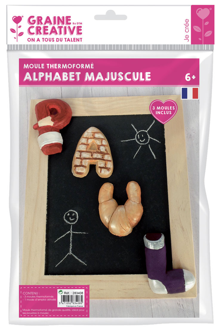 Ce moule est en plastique thermoformé. Il est en forme de lettres de l'alphabet. C'est un moule de très bonne qualité, qui vous permettra une moulage de précision.