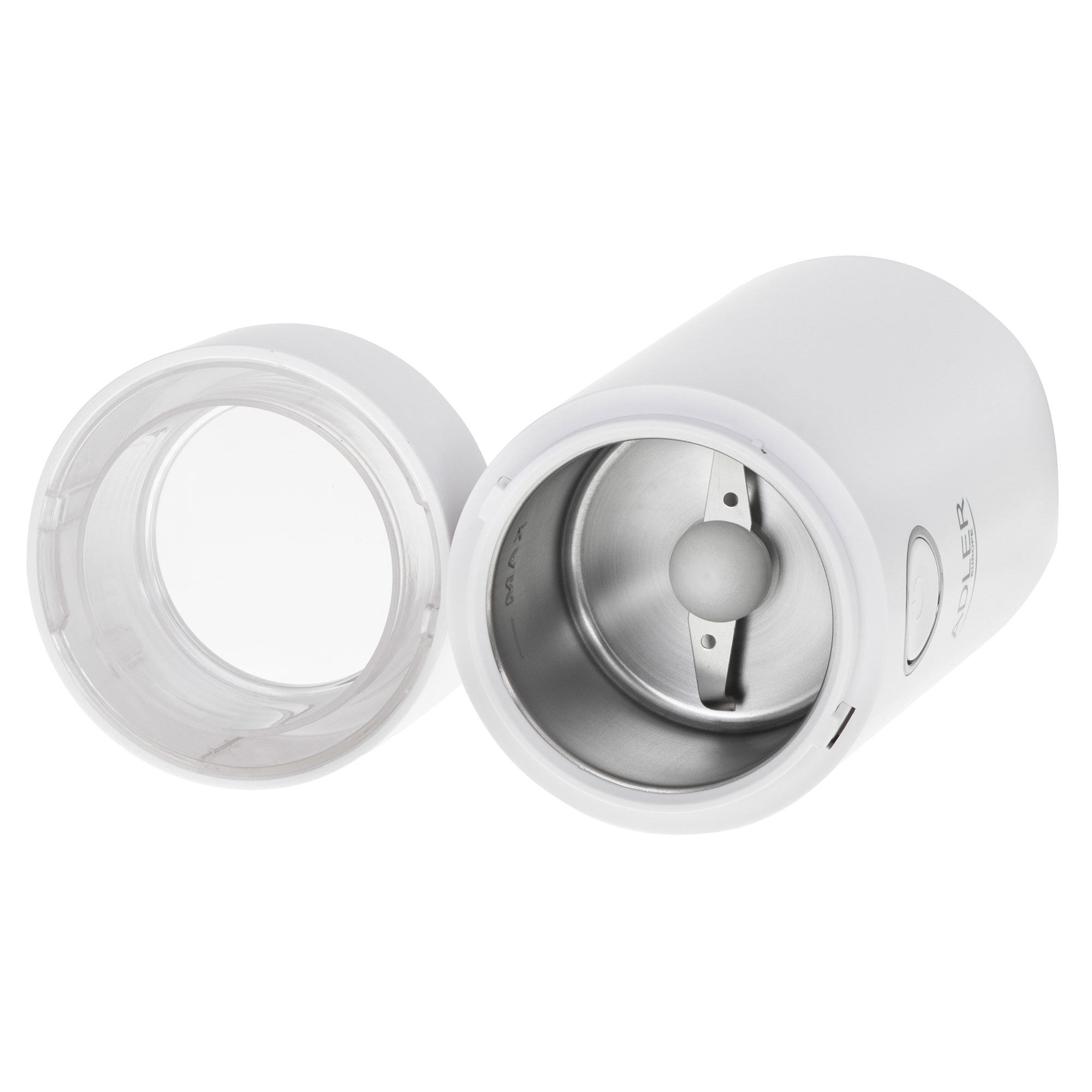 Moulin à Café Électrique, Graines et Noix, Double Lame Acier, Capacité 75g 150 Blanc AdlerAD4446-WS