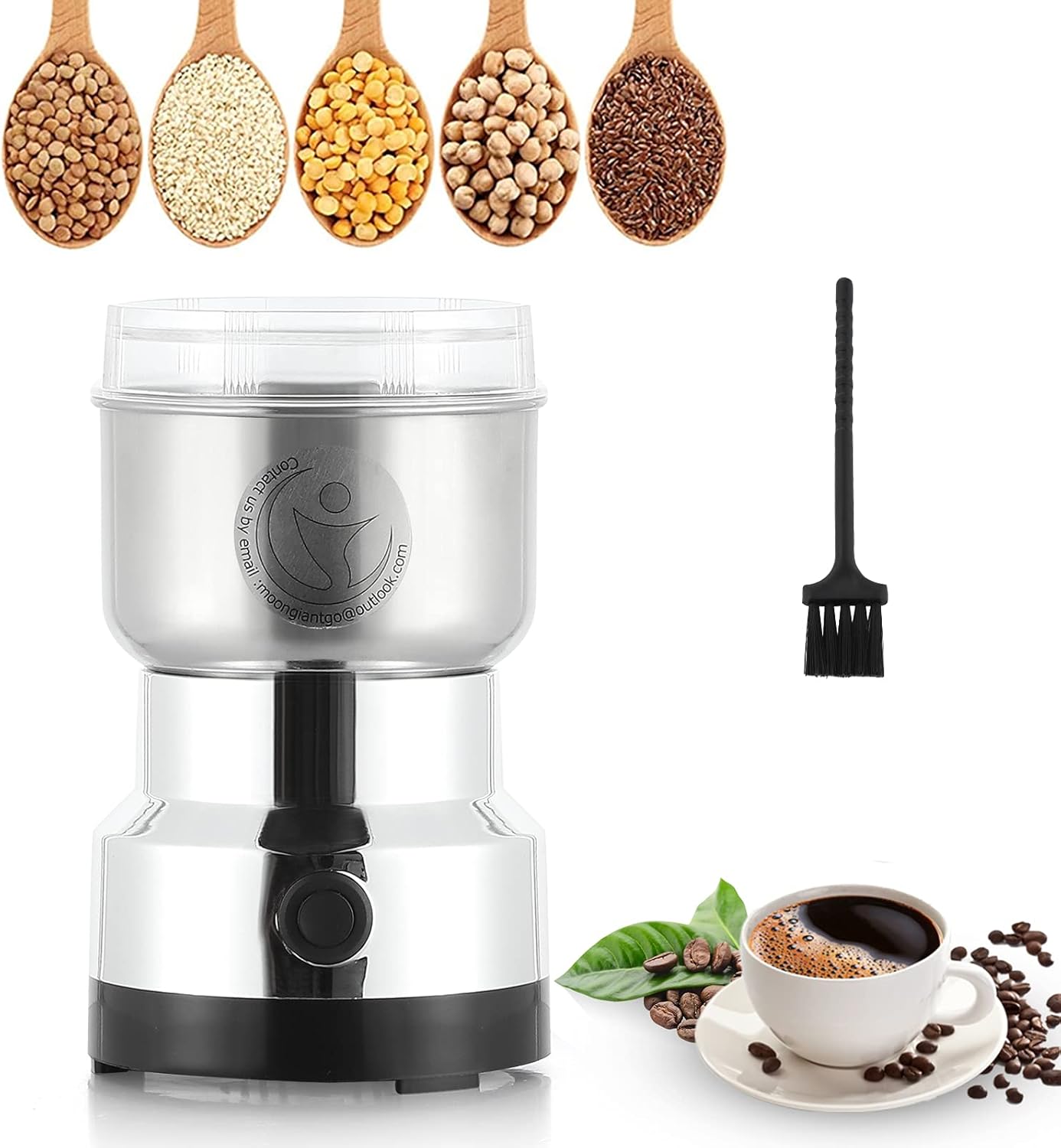 BROYAGE MULTIFONCTION - Le moulin epices electrique est parfait pour moudre une variété de matériaux SÉCHÉS/DÉSHYDRATÉS comme les haricots, poivrons, grains de café, céréales, épices, herbes et assaisonnements. Assurez-vous qu’ils sont écaillés et sans graines. [Attention] Ne pas broyer les noix ou les matériaux à forte teneur en eau/huile pour éviter les dommages au moteur. Volume : 75-80 dB.TAILLE PETITE ET PORTABLE, MOTEUR DE 200W - Moulin à épices électrique compact et portable, dimensions 10,4L x 10,4l x 16,8H centimètres. [REMARQUE] Le moulin grain secs peut légèrement chauffer en raison de la vitesse élevée du moteur. Normal pour une odeur de brûlé pendant le fonctionnement.COUVERCLE EN PLASTIQUE TRANSPARENT - Le couvercle transparent permet d’observer le processus de broyage. Le broyeur grain produit de la poussière grossière ou fine. Capacité : 50g-100g par lot. La finesse varie avec le temps de broyage. Les particules ressemblant à de la fumée sont de la poussière fine, pas de la fumée. La broyeur à epices est conçue comme un ensemble, et le réservoir à poudre ne peut pas être démonté séparément pour le nettoyage.NETTOYAGE & ENTRETIEN - ① Ne pas laver la tasse de moulin farine ou la base du moteur du broyeur à grain mais avec de l’eau. Utilisez une brosse ou un chiffon sec pour nettoyer. Le moulin à céréales n’est pas étanche; ② Repos de 3 secondes après chaque utilisation de 5 secondes pour améliorer les performances du moteur et éviter la surchauffe. ③ Les ingrédients doivent couvrir la lame et ne pas dépasser 2/3 de la capacité de la tasse de broyage.