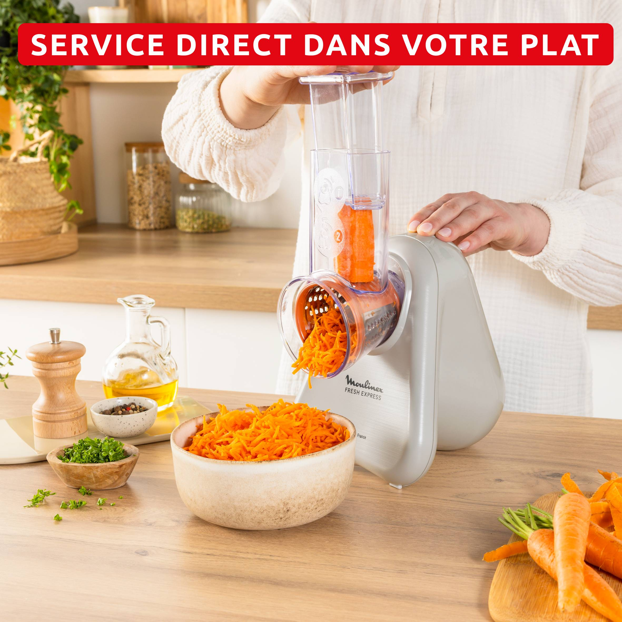 En tant qu'inventeur des découpe-légumes avec service direct, avec plus de 7,4 millions d'unités vendues, Moulinex s'engage dans l'innovation et la réinvention afin de rendre la cuisine accessible à tous. Associant fiabilité et efficacité, Fresh Express est fabriqué en France pour vous aider à réussir chaque jour toutes vos préparations maison.