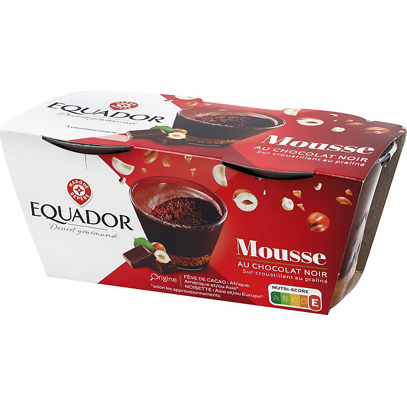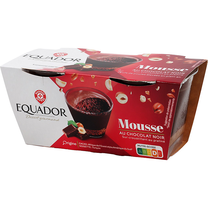Mousse au chocolat croustillant - 2 x 90 g - EQUADOR