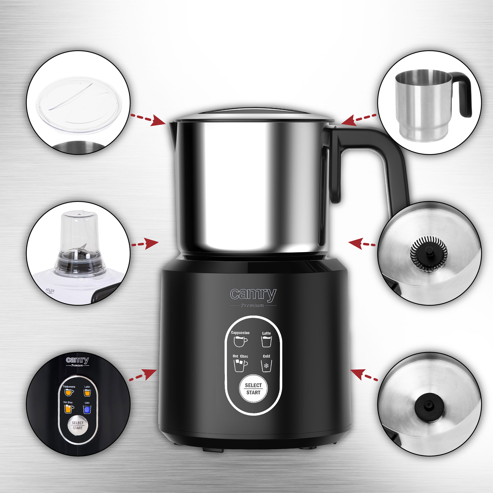 Moussoir à Lait Automatique 350 ml Fouet Électrique, Mousse Chaude/ Froide 1000 CamryCR4498