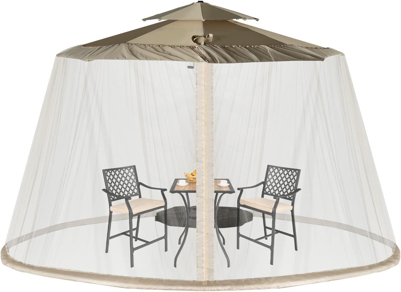 Moustiquaire pour parasol et tonnelle de camping terrasse avec 2 portes à double fermeture eclair,beige