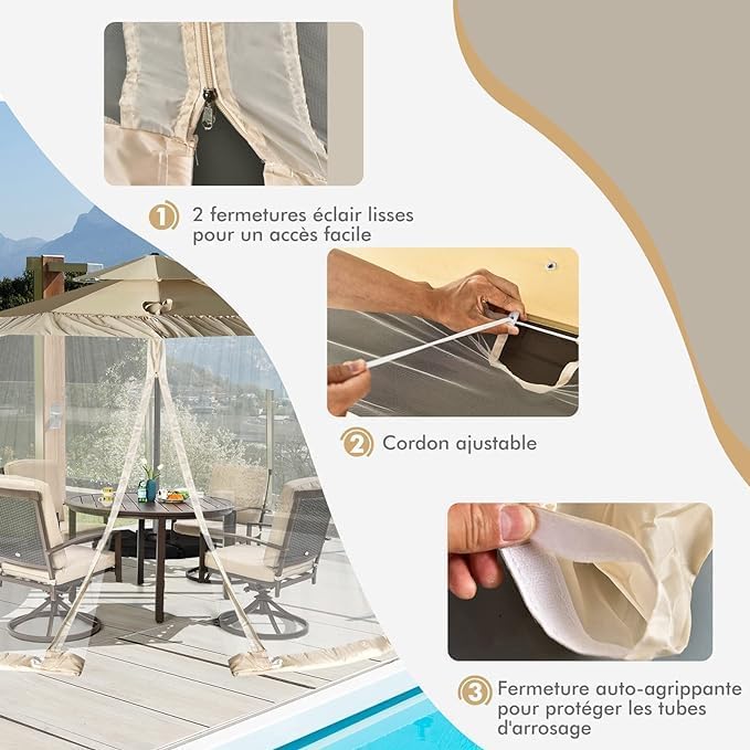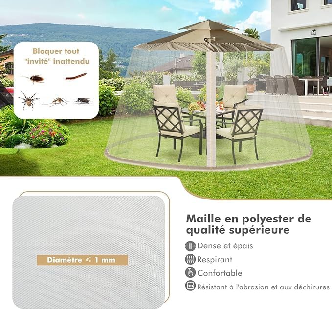 | Libellé | Moustiquaire pour parasol et tonnelle de camping terrasse avec 2 portes à double fermeture eclair,beige |
