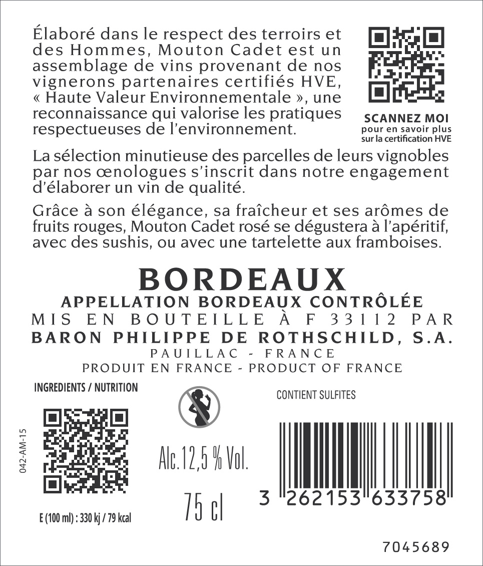 | Libellé | Mouton Cadet, 2024 - Bordeaux Rosé AOP - Rosé - 75 cl |