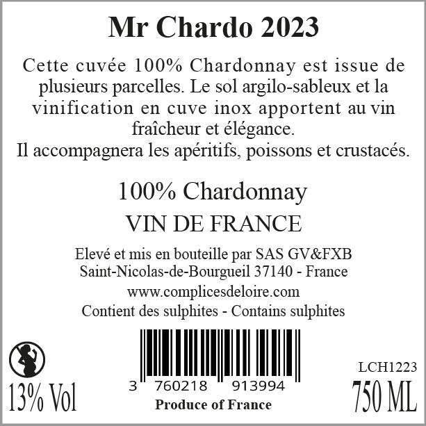 | Libellé | Mr Chardo, 2023 - Vin de France - Blanc Sec - 75 cl |