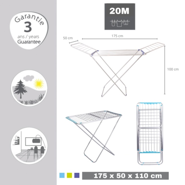 | Libellé | MSV Etendoir à linge à ailes en Alu 20M (coloris assortis) |