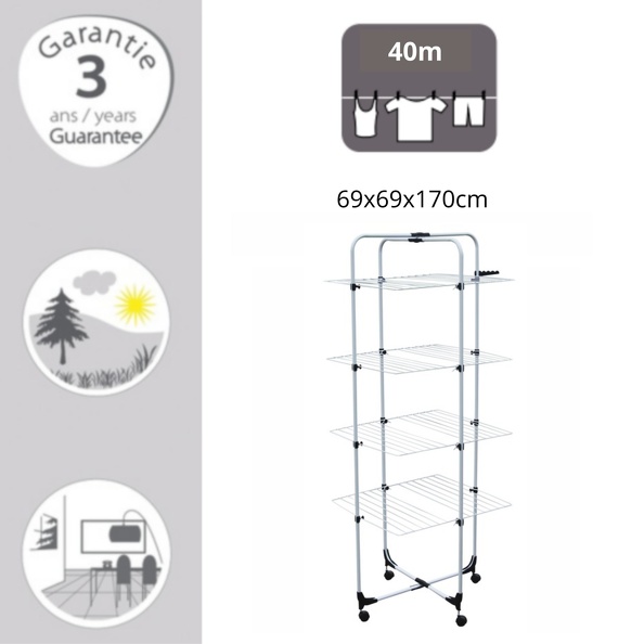 | Libellé | MSV Etendoir à linge Tour 4 Niveaux à roulettes 40M Acier Blanc |