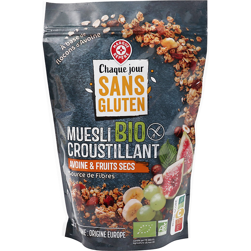 muesli croustillant avoine et fruits secs bio sans gluten - 375 g - CHAQ. JR S/ GLUTEN